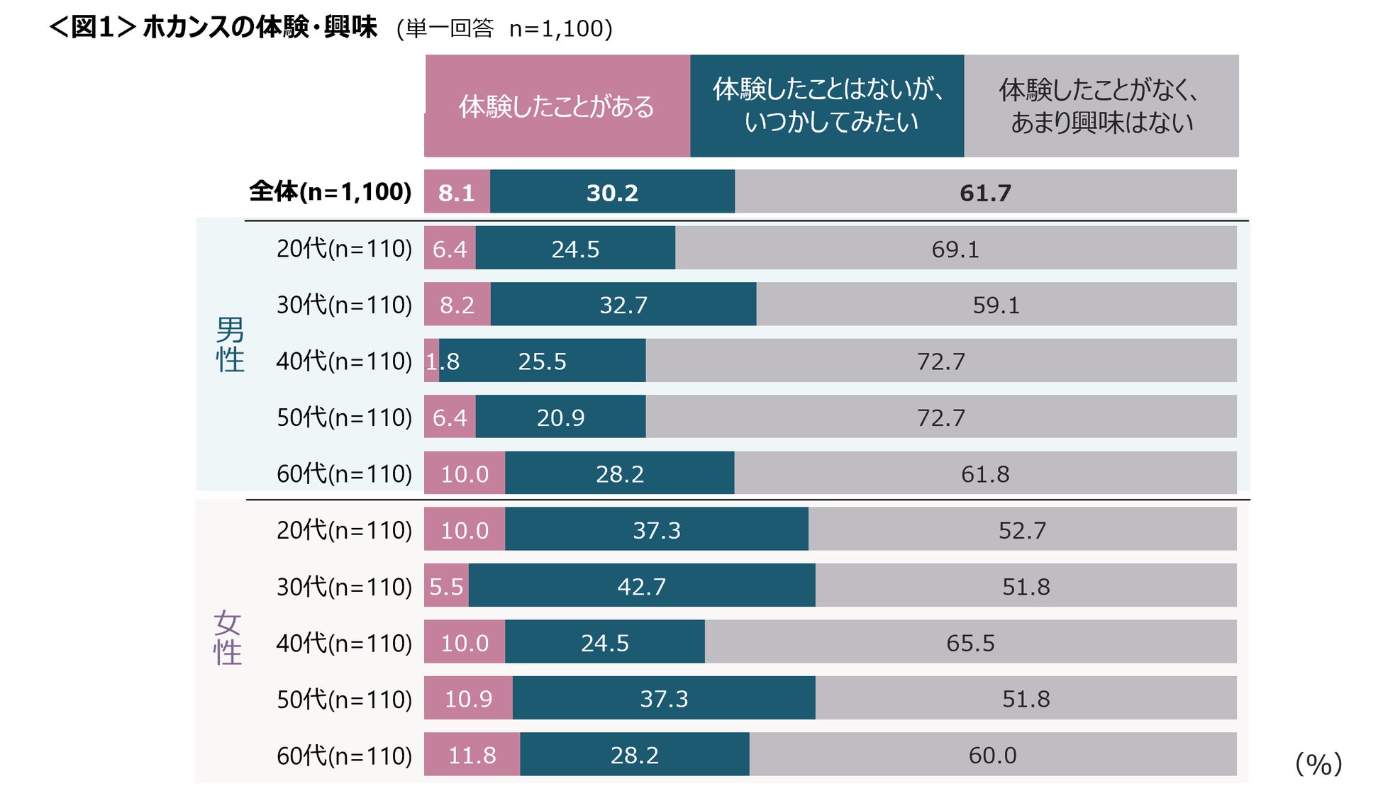 ホカンスを体験したことがある人は8.1%、いつかしてみたいは30.2%。<図1>