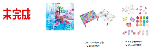 「雑貨!未完成」は古今東西、あらゆる場所から集めた楽しい雑貨のお店です。夢溢れる素敵な物、かわいい物、ヘンテコな物、シールやアクセサリー等の小物から、家具や電飾や日用雑貨まで、国内や世界中を練り歩き、見つけ出した素敵な珍品をご用意しています。ショップでは、ファンシーなちゃぶ台やヘアアクセサリーなどのアイテムを発売。