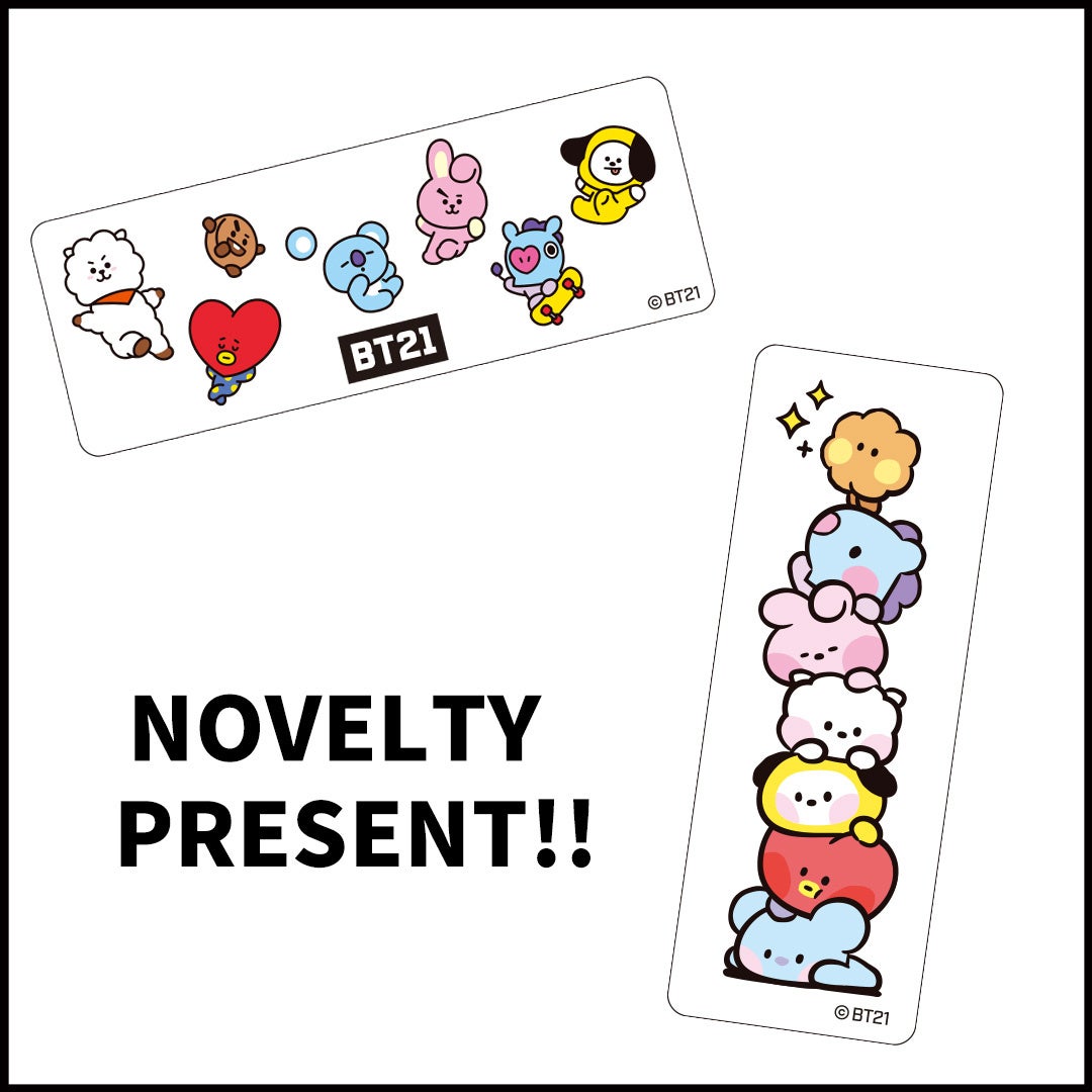 (画像左)横型シール対象商品:BT21バックプリントTシャツ、BT21サークルプリントTシャツ