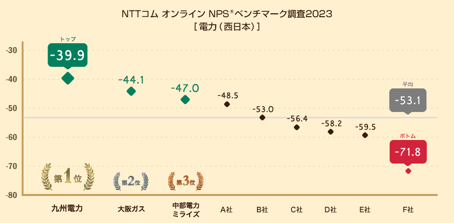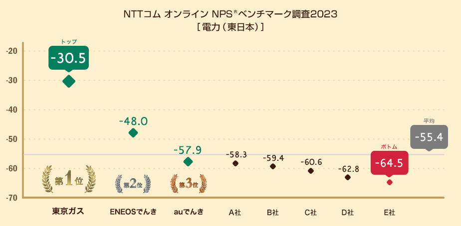 NTTコム オンライン、電力業界を対象にしたNPS®ベンチマーク調査2023の結果を発表。東日本部門1位は東京ガス、西日本部門1位は九州電力