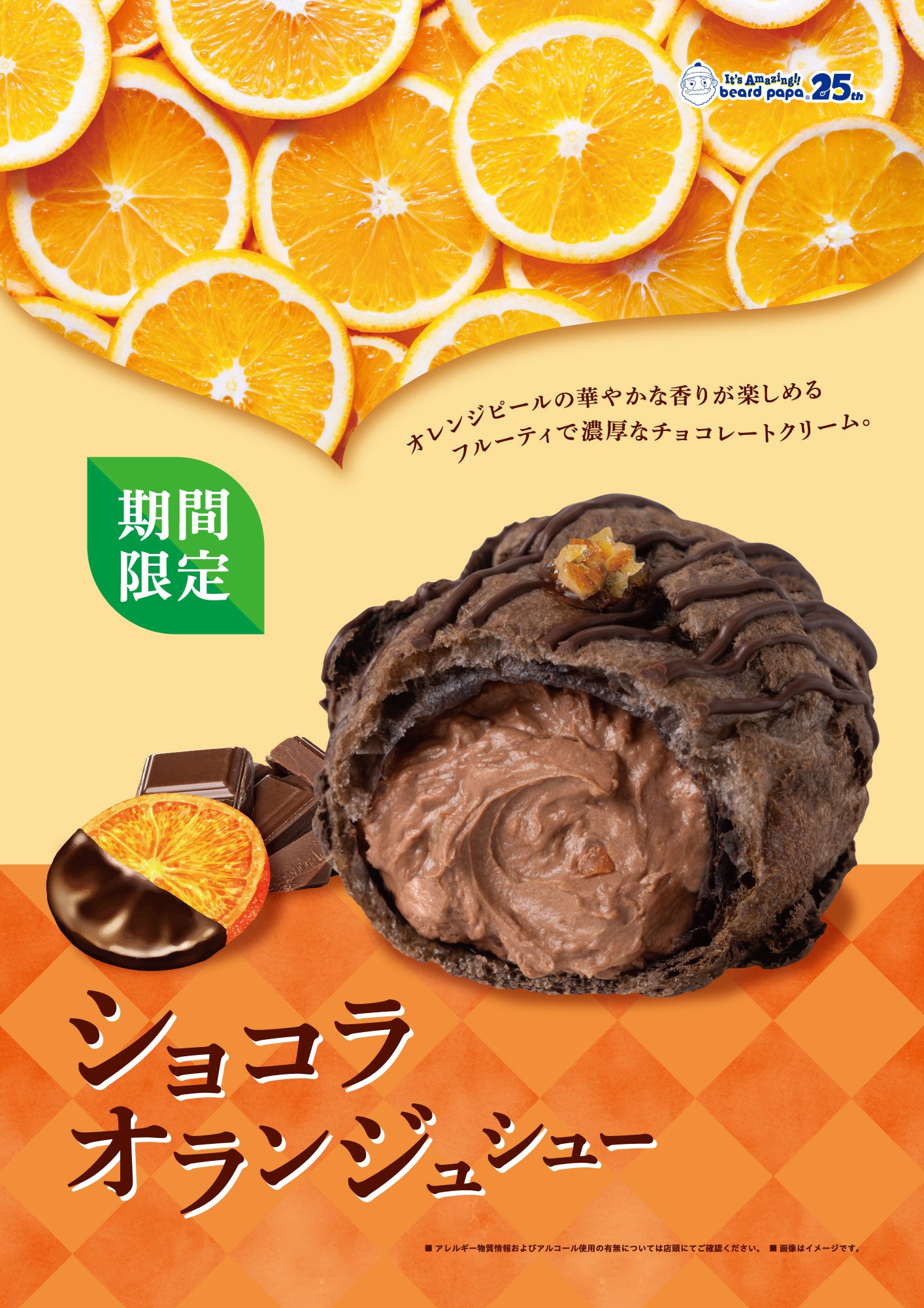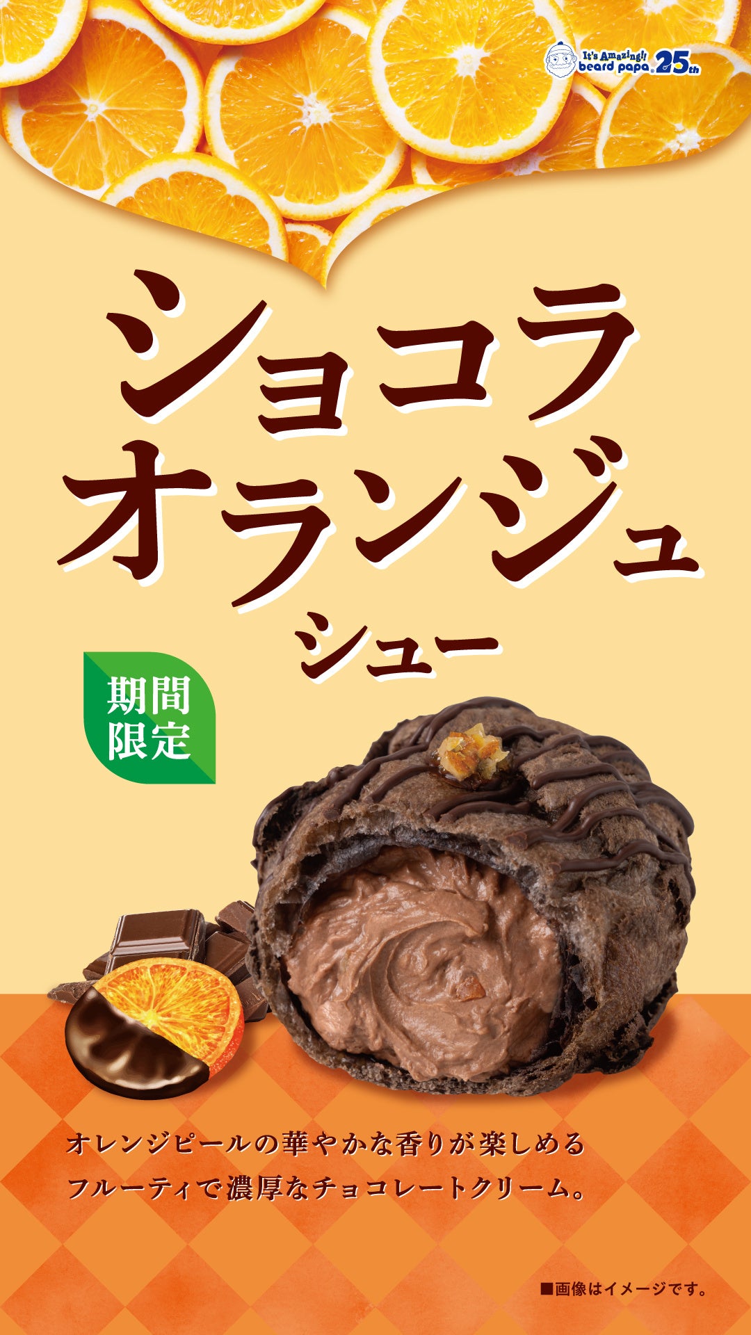 昨年5店舗限定で販売して8割を超えるお客さまに注文された“ショコラオランジュシュー”が好評につき全国のビアードパパにて期間限定で登場!
