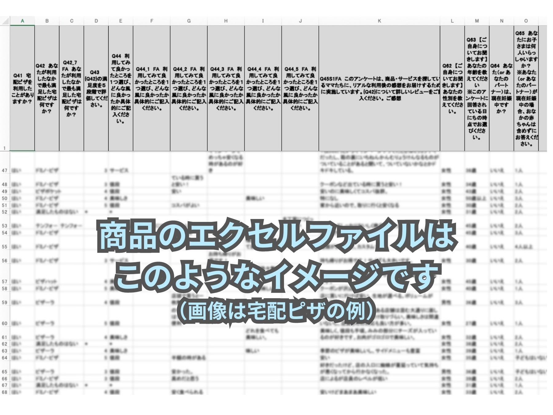 提供するデータは、エクセル形式のローデータとなっており、マーケティング戦略の策定や製品・サービスの改善などを検討する上で、さまざまな形で利用することが可能です。ママたちから得られた生のフィードバックをもとに、より顧客志向のビジネスを考えるためにも活用できるはずです。