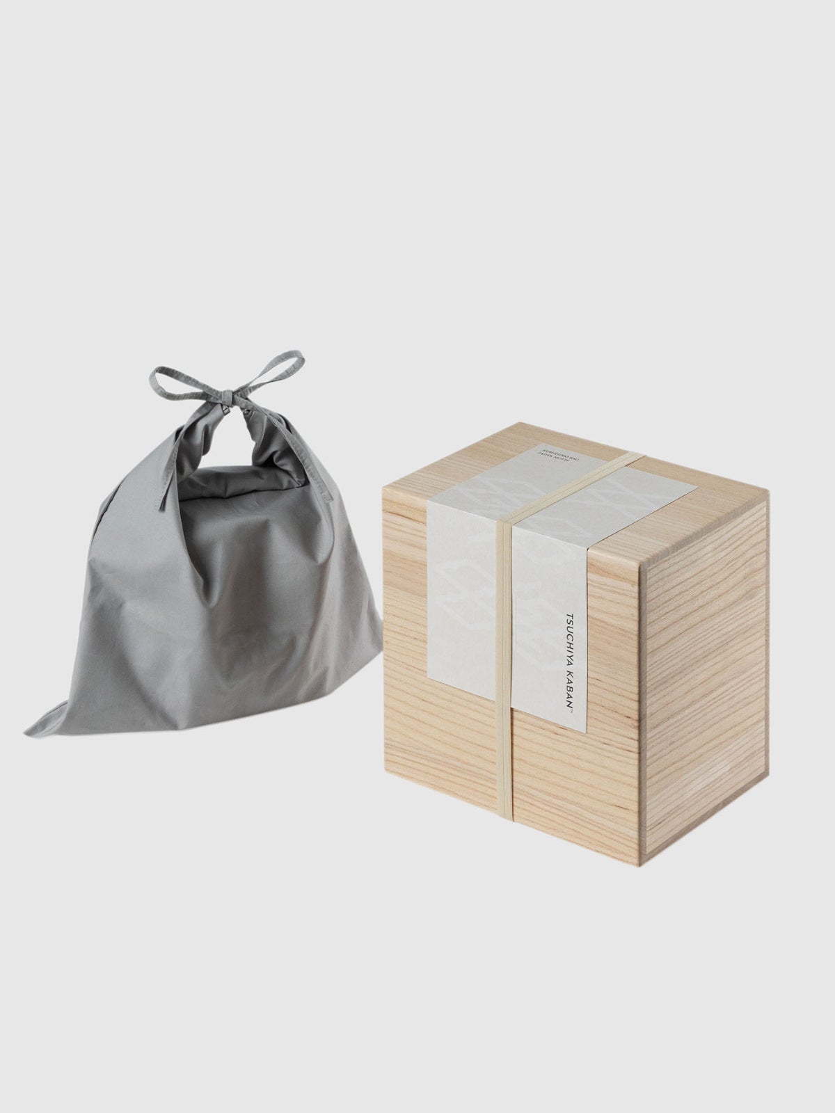 組紐の「つなぐ・結ぶ」という要素を抽出し、その組紐でパーツをつなぎながら、立体に起こすような構造に。巾着の紐部分でさらりと持ったり、金属のハンドルを手にして少しフォーマルな印象を演出したりできるのが魅力の"工芸バッグ"です。装いのアクセントとして日常に特別感をプラスし、ドレスアップシーンではより華やかさを強調。和装に合わせればモダンさが生まれ、モダンな装いに持てば奥行き感を生むなど、余白のあるスタイリングで常に新しい表情を見せてくれます。東北産の桐材で仕立てた特別な化粧箱に入れてお届けいたします。