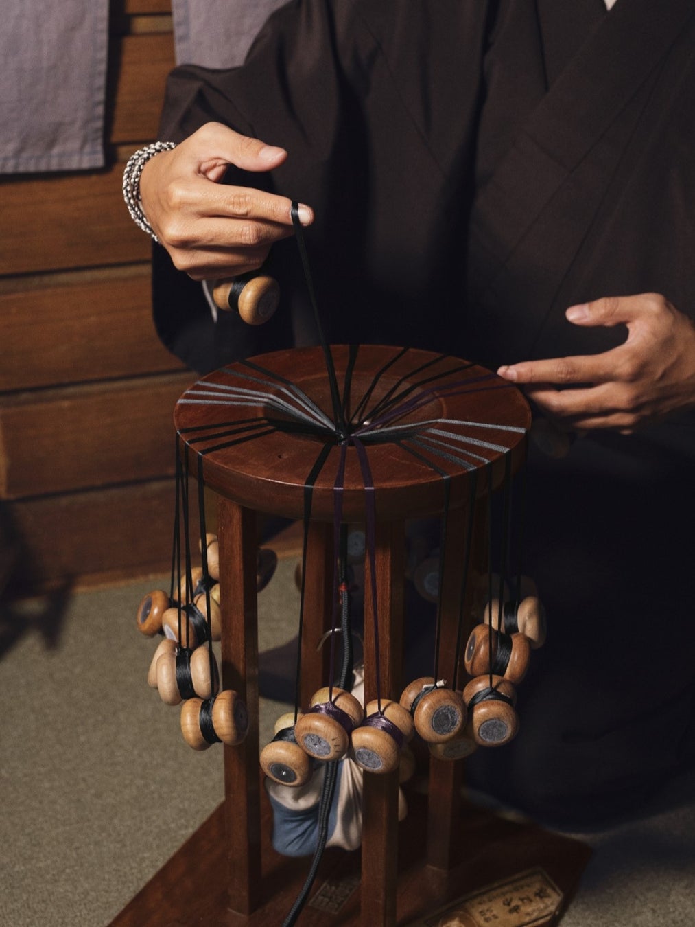 組紐の製作からバッグへ通していく作業までは、老舗組紐店「龍工房」が手掛けています。