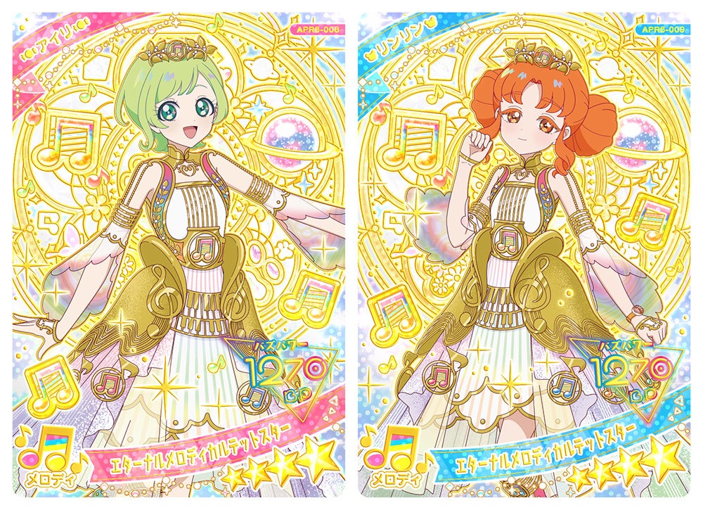 「リング6だん」では3月13日(金)に公開となる「映画ひみつのアイプリ まんかいバズリウムライブ!」に登場する桜をイメージしたコーデ「ゆうじょうさくらツインコーデ」の「ひまり」と「みつき」が登場します。また、「カルテットスター」のエターナルコーデとなる「エターナルメロディカルテットスター」を着た「サクラ」「タマキ」「アイリ」「リンリン」がラインアップし、それに合わせ過去のエターナルコーデも再収録いたします。