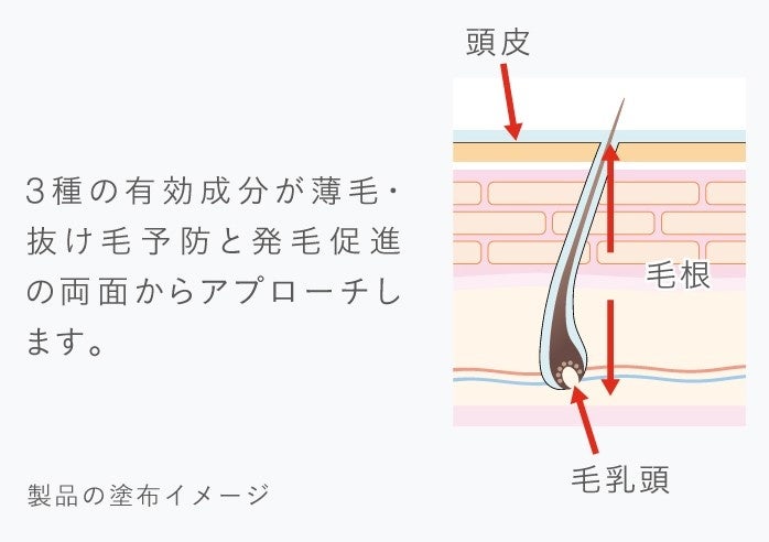POINT1 自然由来成分99%。3種の有効成分が発毛・育毛を促進