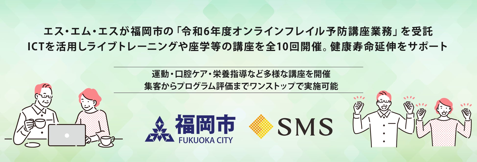 エス・エム・エスが福岡市の「令和6年度オンラインフレイル予防講座業務」を受託。ICTを活用しライブトレーニングや座学等の講座を全10回開催。健康寿命延伸をサポート