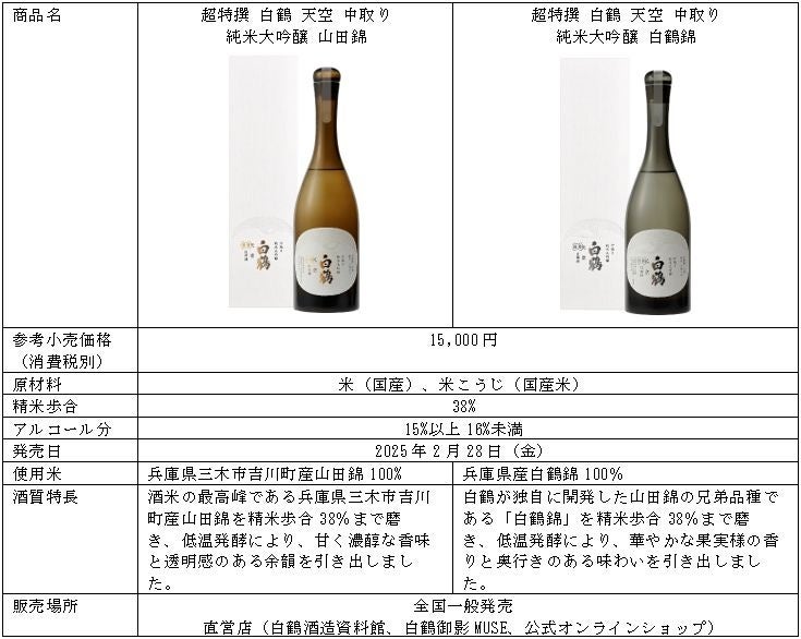 白鶴酒造株式会社は、2025年2月28日(金)から「超特撰 白鶴 天空 中取り 純米大吟醸」2種を全国で発売します。