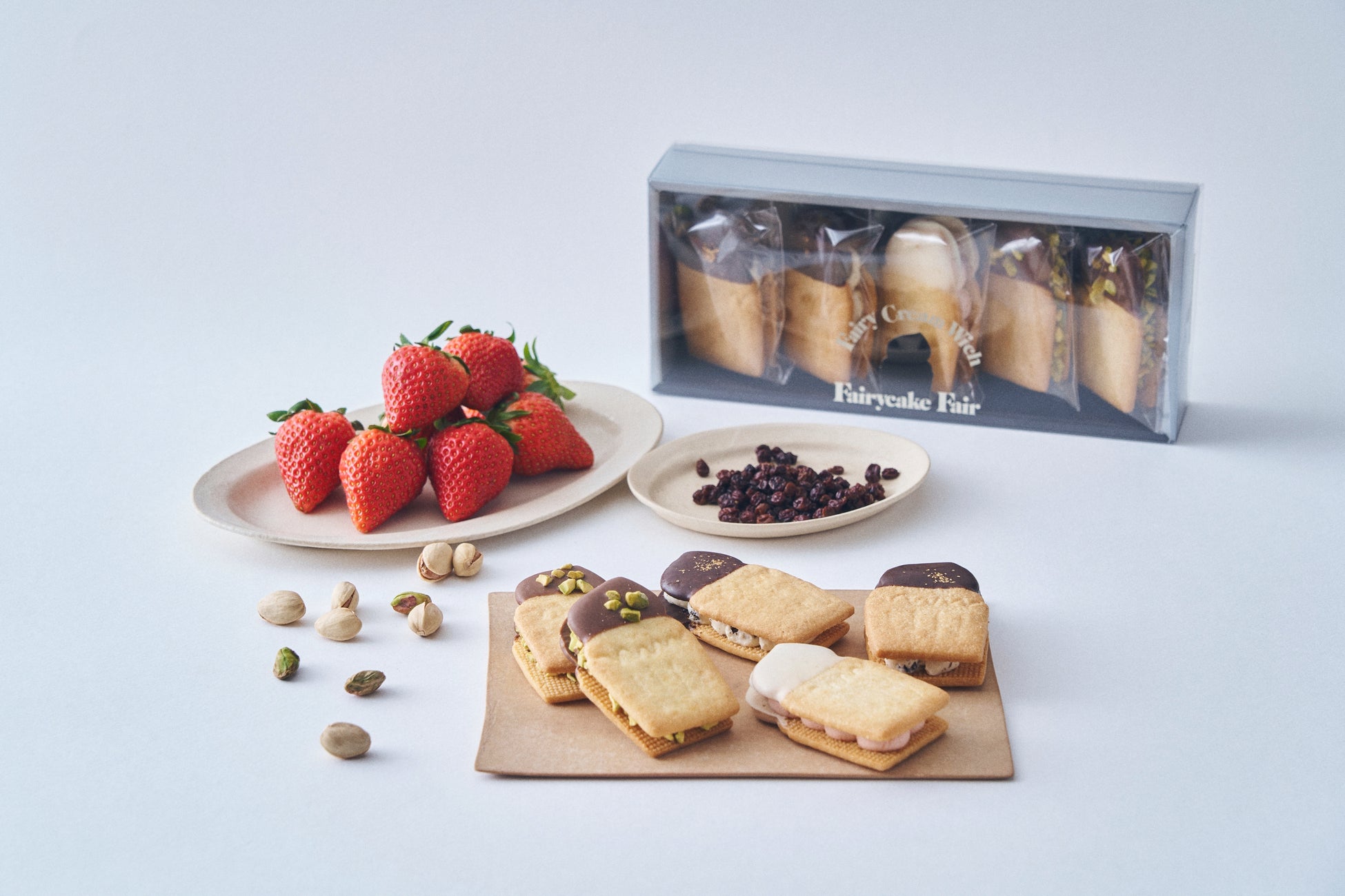 レーズン生バターサンド、ピスタチオ生バターサンド×各2個、奈良県産古都華いちご生バターサンド×1個