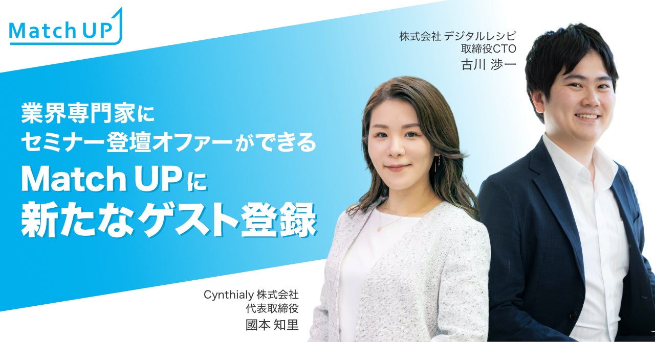 業界専門家にセミナー/イベント登壇のオファーができる「Match UP」、Cynthialy株式会社の國本知里氏、株式会社デジタルレシピの古川渉一氏などが新たにゲスト登録!