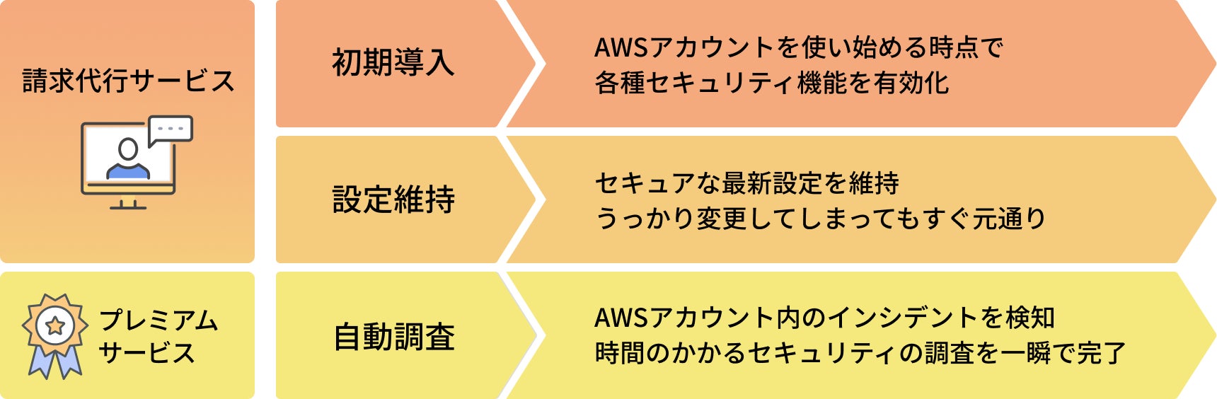 「セキュアアカウント」ではAWSアカウントを利用開始時からセキュアな状態で利用できる「初期導入」やセキュアな設定の維持に利用できる「設定維持」を提供してきました。このたび、新たに「自動調査」機能を追加し、提供開始します。