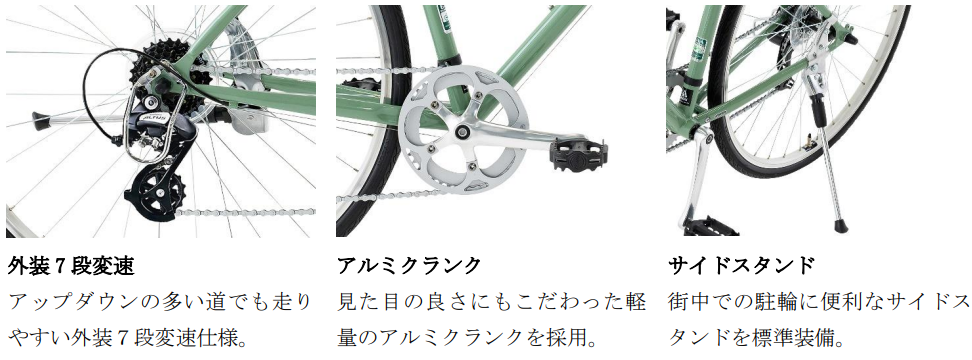 3万円台から購入できるラインナップと豊富なバリエーションで、ロゴやブランドマークも控えめに配置し、自転車全体の美しさを際立たせます。