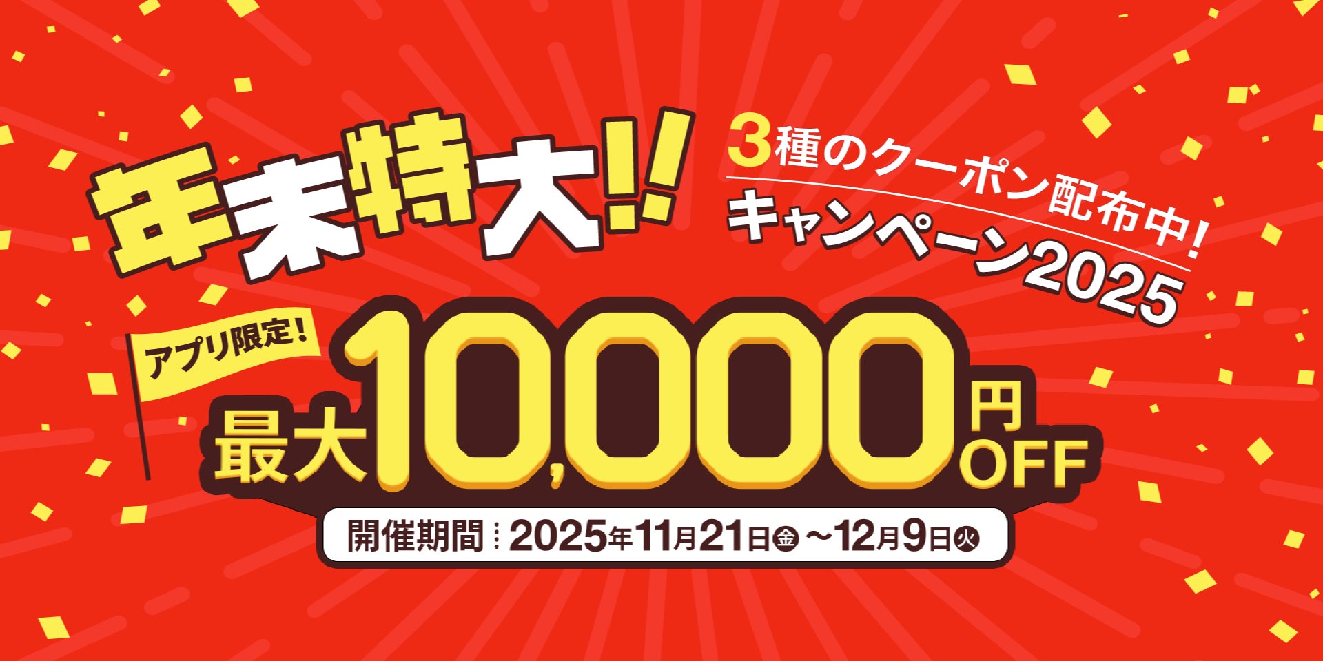 ◼︎クーポン種類:10,000円オフクーポン、3,000円オフクーポン、1,000円オフクーポン(※)