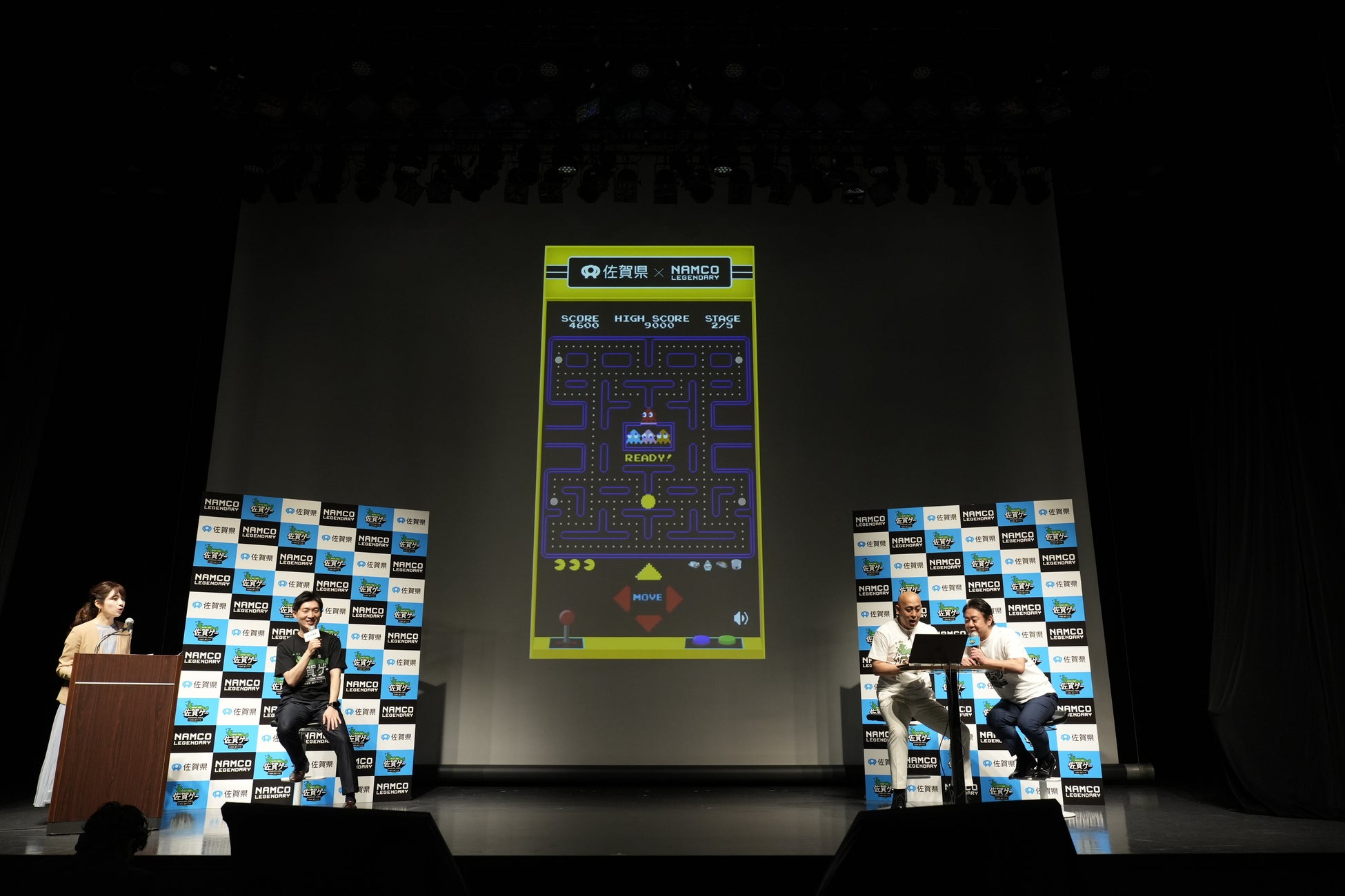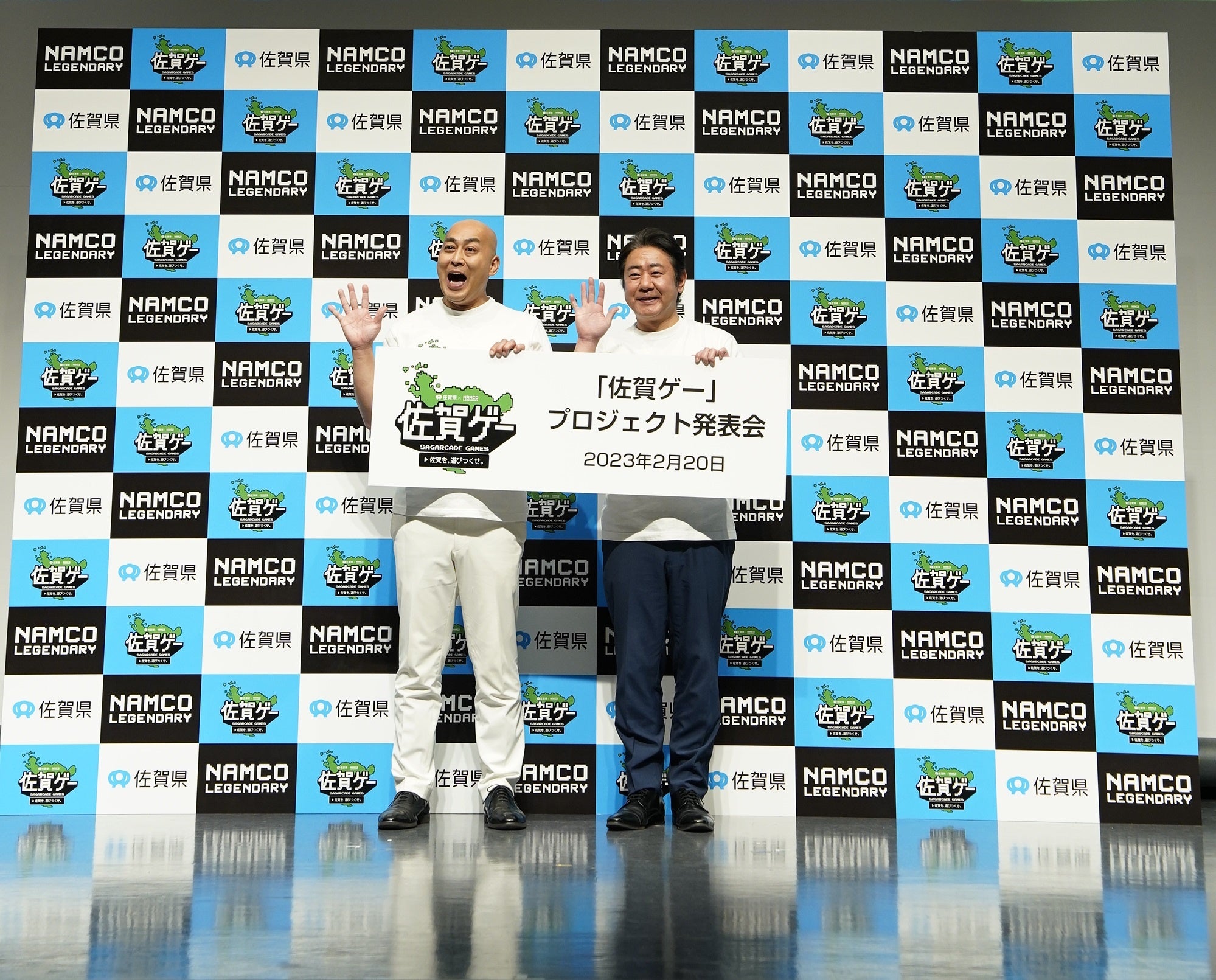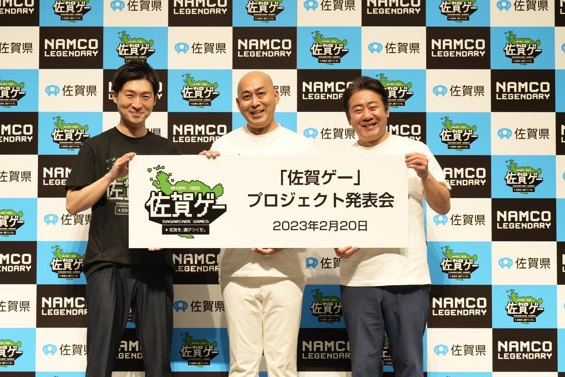 佐賀県は、情報発信プロジェクト「サガプライズ!」の事業の一環として、株式会社バンダイナムコエンターテインメントの人気ゲーム「パックマン」をはじめとした名作ゲーム5タイトル(パックマン・ポールポジション・ゼビウス・スカイキッド・ワルキューレの伝説)とコラボし、ゲームで佐賀県を遊んでもらうプロジェクト「佐賀ゲー」を公開しています。2月20日(月曜日)にコラボゲーム『パックマン佐賀県ver.』と名作ゲーム5タイトルとの「コラボGIFアニメ」の公開に合わせて、人気お笑い芸人 錦鯉のお二人をゲストとしてお招きし「佐賀ゲー」プロジェクト発表会を、渋谷ストリームホールにて開催しました。