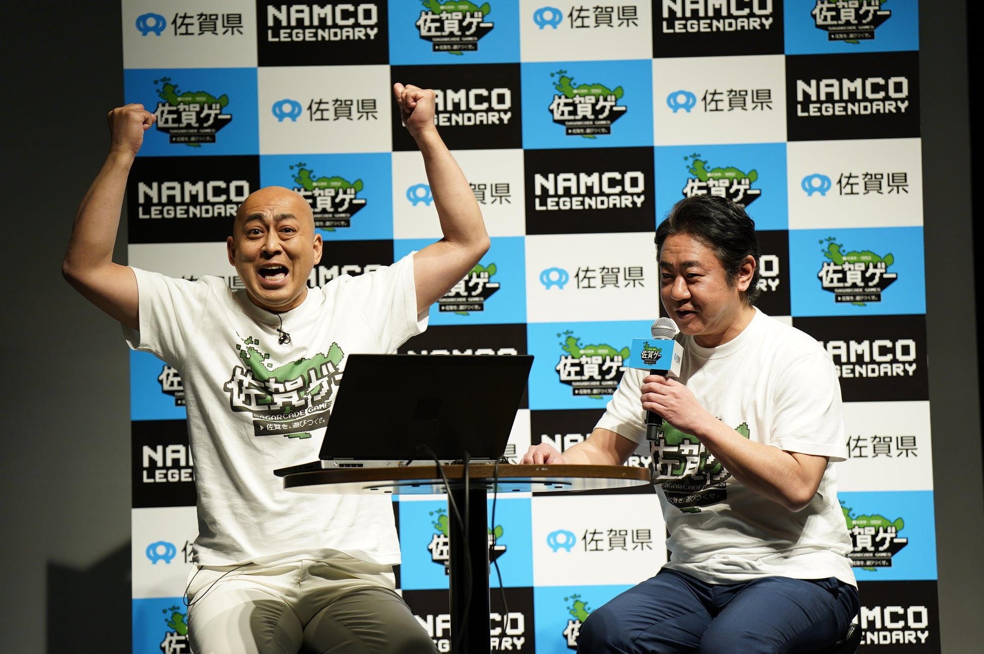 人気お笑いコンビ 錦鯉を発表会にお迎えして『パックマン佐賀県ver.』を体験プレイ!長谷川さんの新ギャグ「佐賀ゲー」も誕生?!