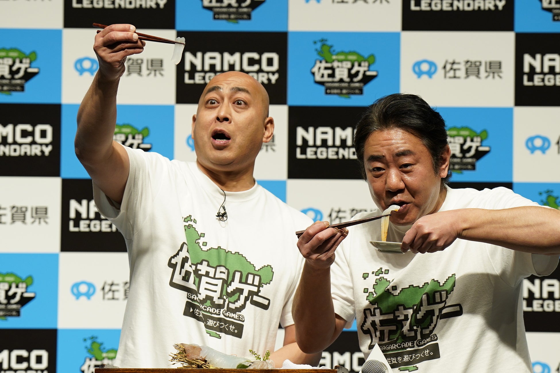 - 発表会ではコラボゲーム「パックマン佐賀県ver.」を錦鯉 長谷川さんが体験!クリアした長谷川さんは「家帰ってからもやります」と佐賀ゲーに夢中!?グルメレポートも!