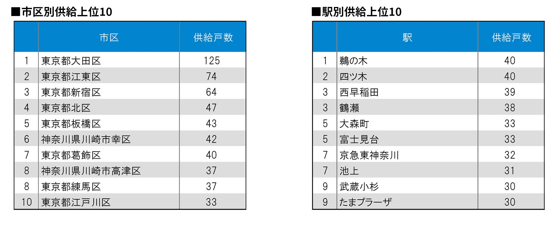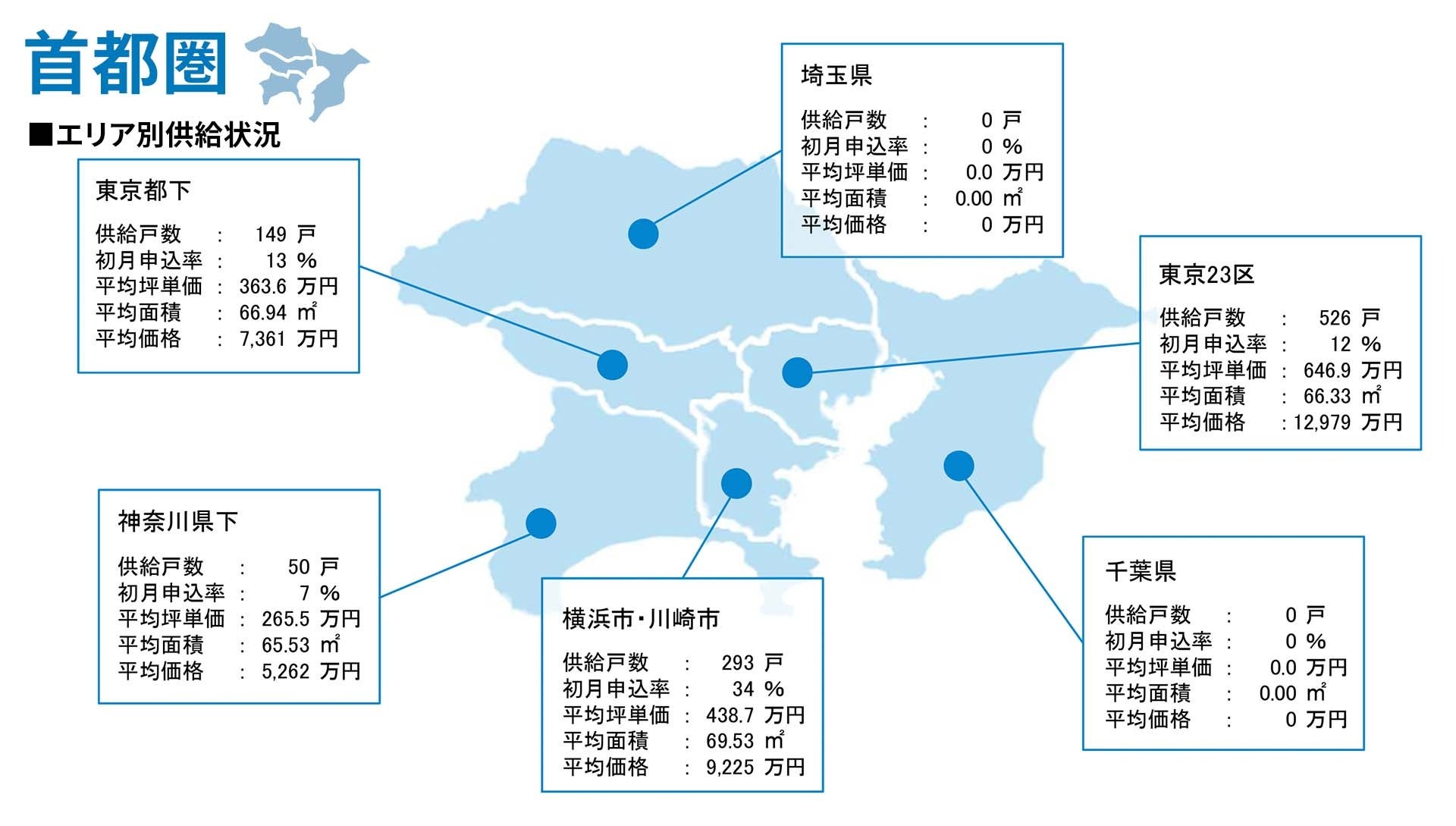集計対象エリアは首都圏及び関西で、それぞれのエリア別相場情報、需給動向、着工件数等を集計しました。