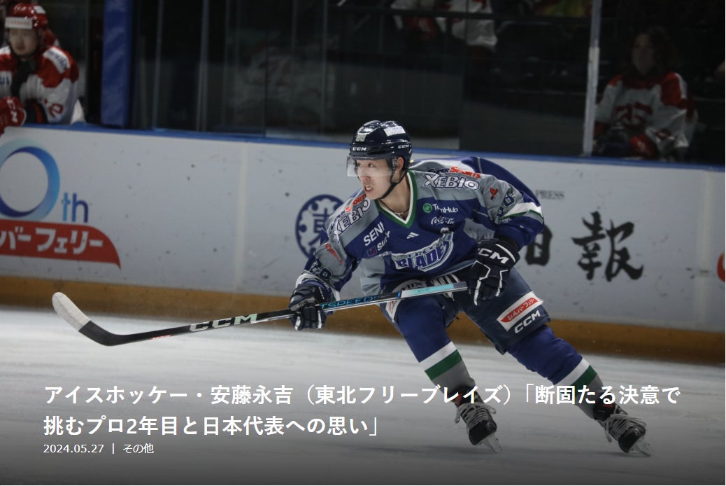 対象コラム:アイスホッケー・安藤永吉(東北フリーブレイズ)「断固たる決意で挑むプロ2年目と日本代表への思い」