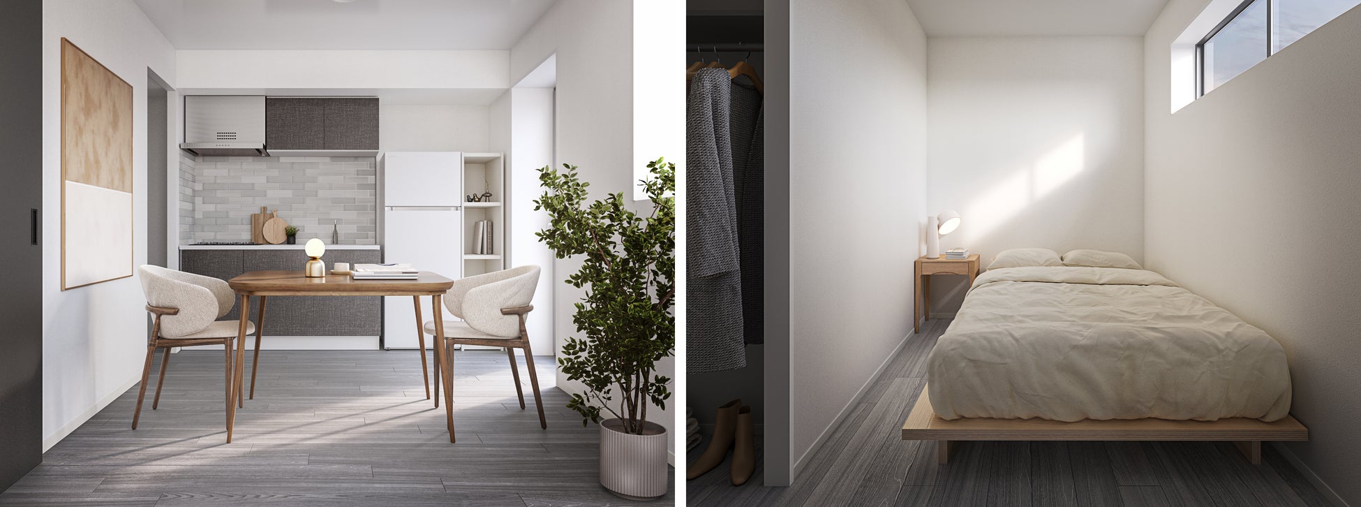 また、バルコニーは奥行きや幅を十分に確保し、小さなテーブルを置いてコーヒーを楽しんだり、ヨガなどの軽いストレッチをしたり、住み手によってさまざまな利用方法が生まれるよう計画しました。