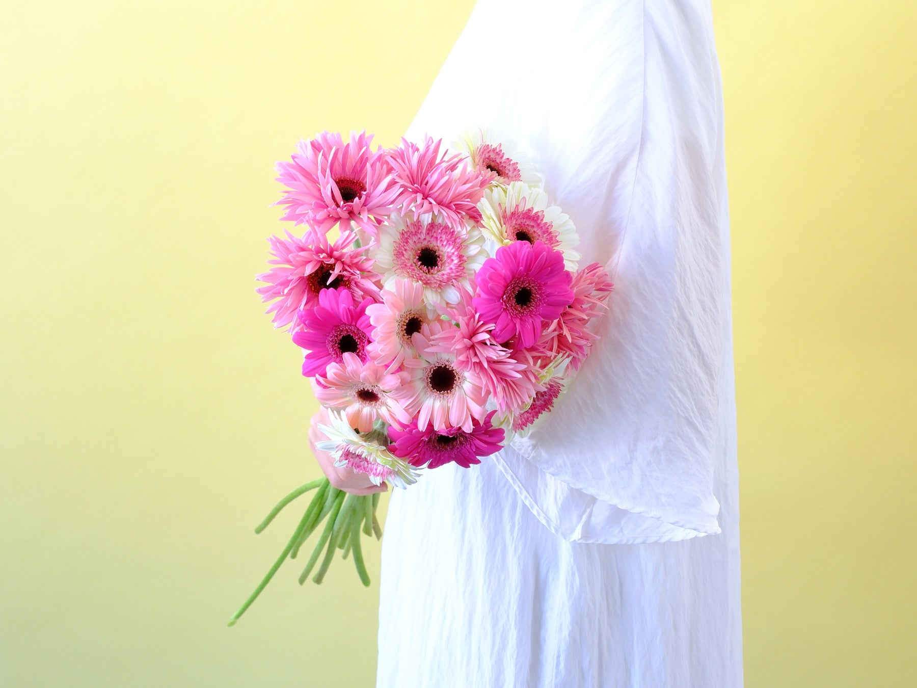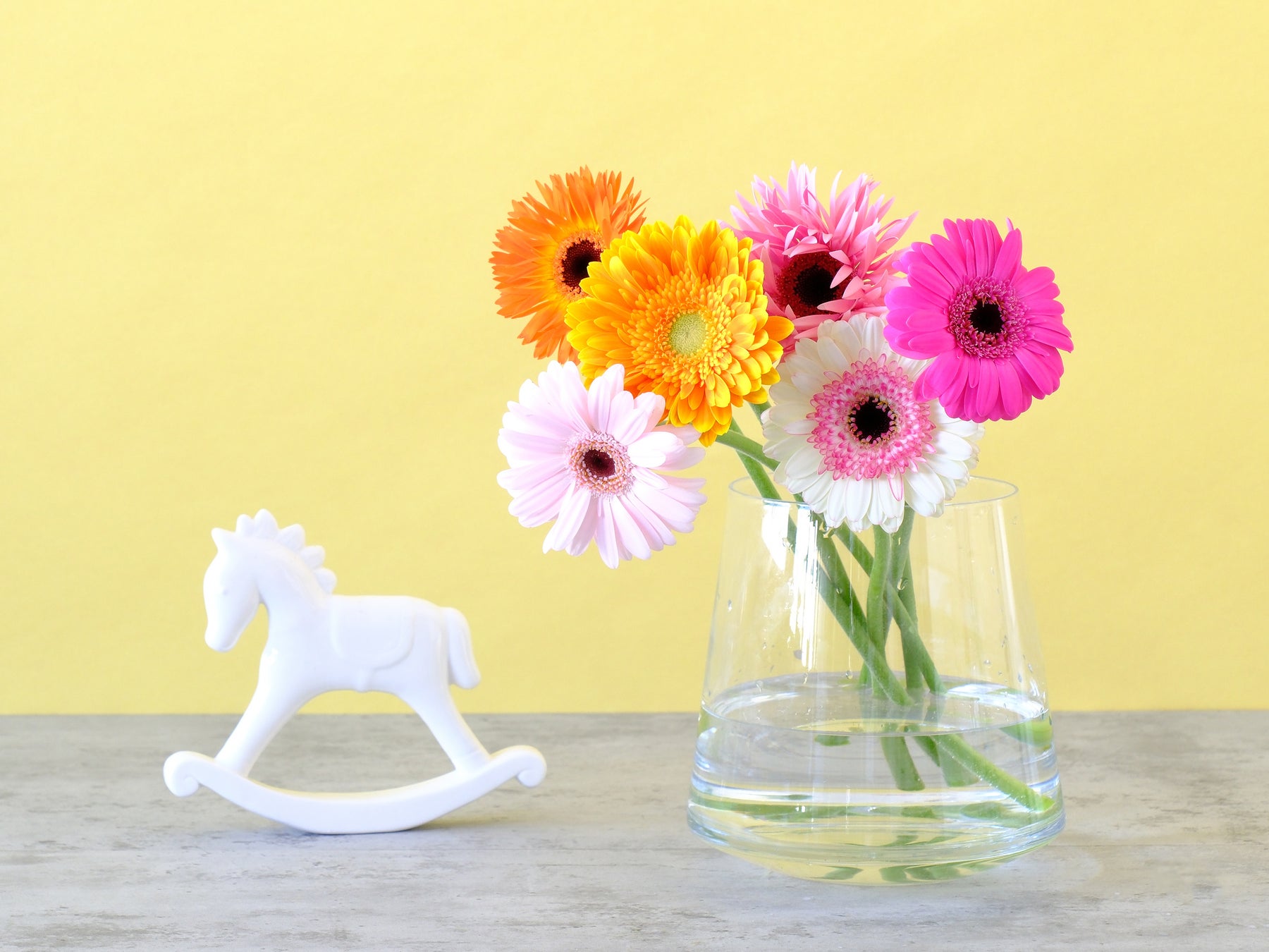 ガーベラは、季節や年齢、性別を問わず親しまれている、身近でありながら存在感のある花です。花の表情とすらりと伸びる茎のバランスが美しく、一輪飾るだけでも空間がぱっと明るくなります。