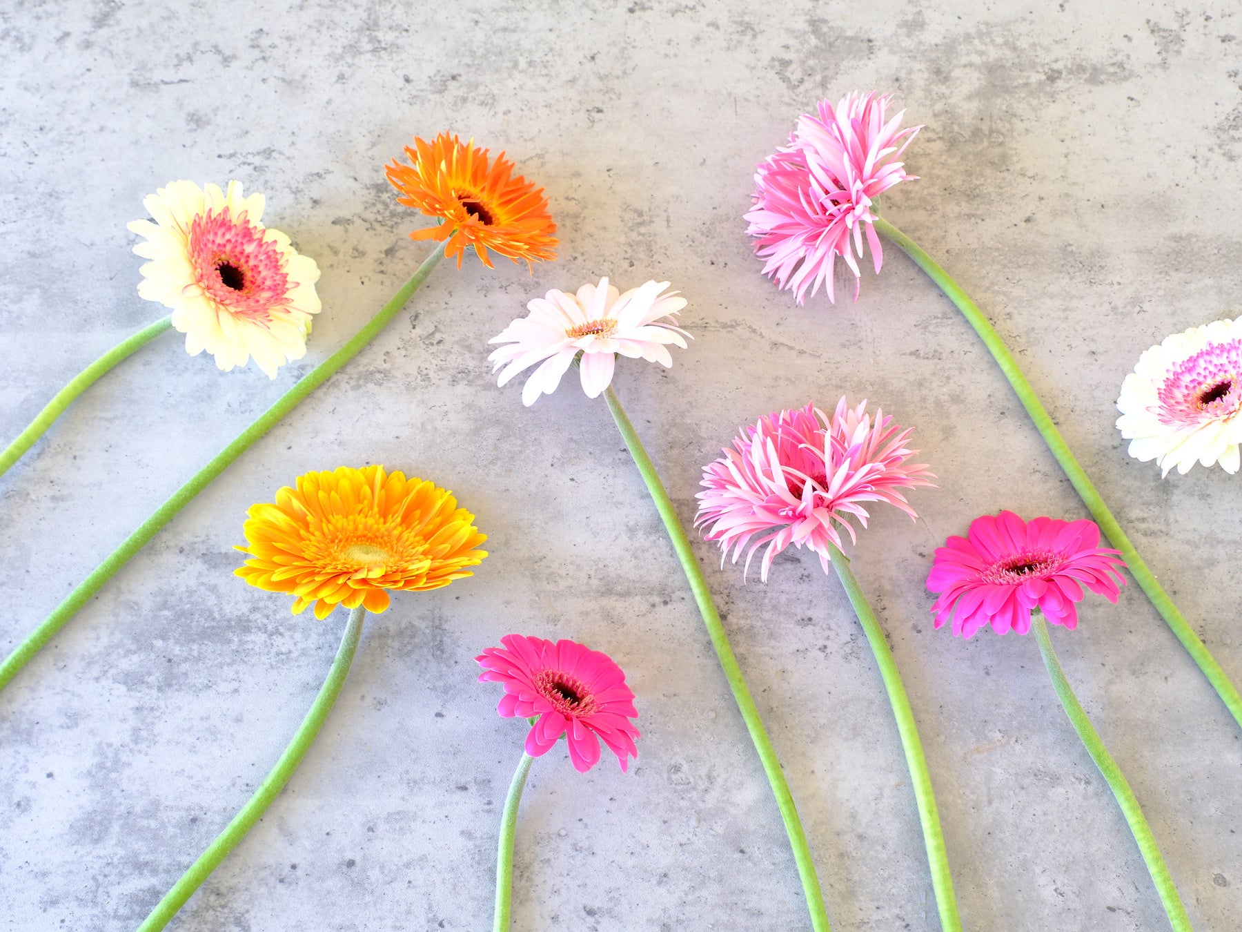 ガーベラは一年を通して花屋で見かける人気の花ですが、開花期は春と秋。なかでも4月は出荷の最盛期を迎え、色や花姿のバリエーションが豊富になる季節です。