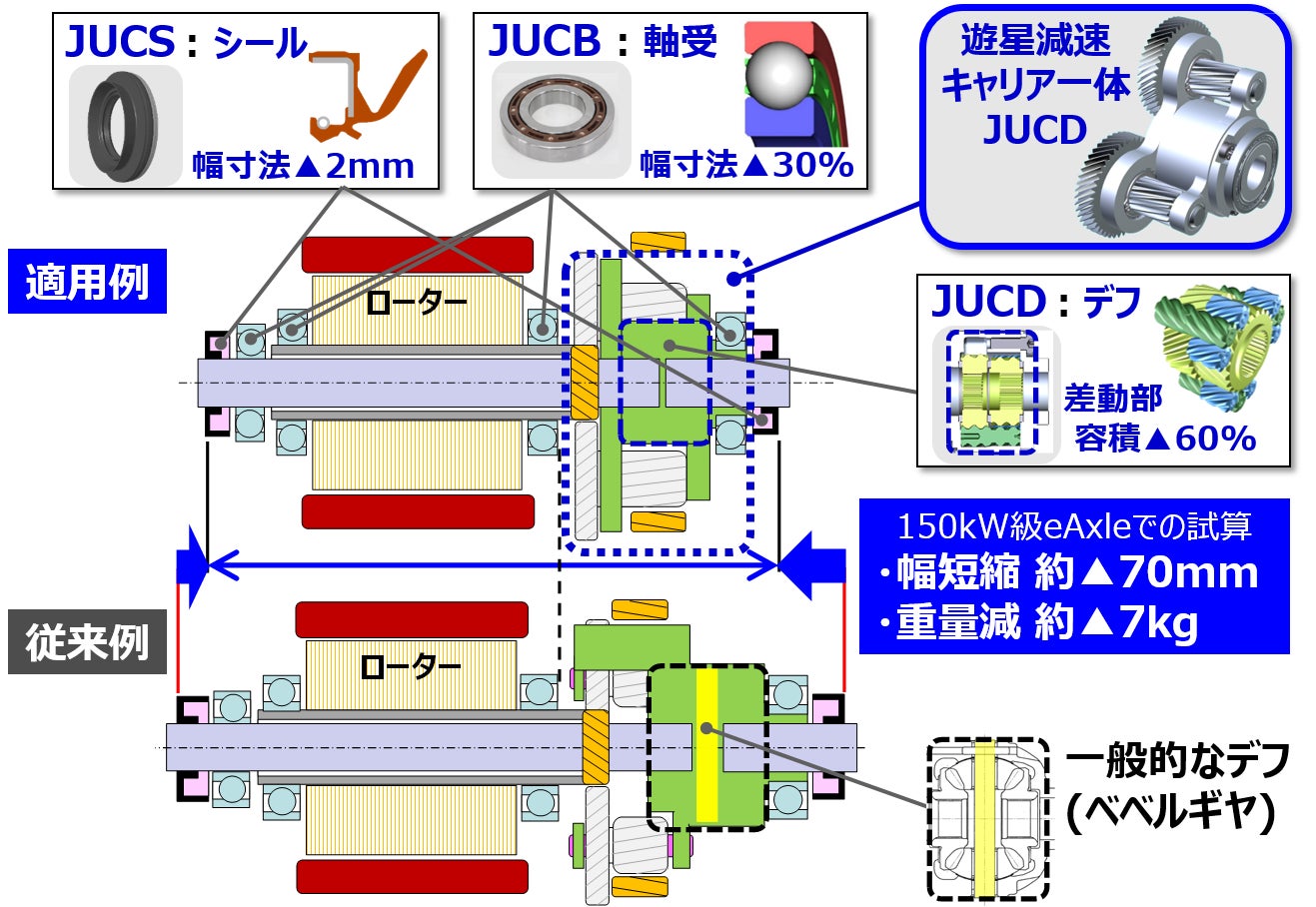 ※遊星減速キャリア一体JUCDは、同軸遊星式eAxleに搭載されます。
