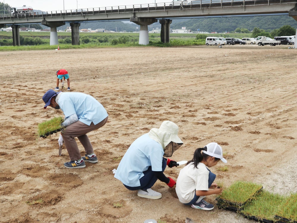 コロナ禍で、子ども達の体験の場が減少していることから、私たちに出来ることは何かと考え、工場見学の受け入れ等を実施してまいりました。今回も地域の皆さまと一緒に体験することで子ども達の“原体験”の一つになればと思い参加させていただき、私自身もとても貴重な体験をさせていただきました。数か月後には苗が育ち芝のグラウンドが出来るということで、地域の皆さまの憩いの場になることを今から心待ちにしています。