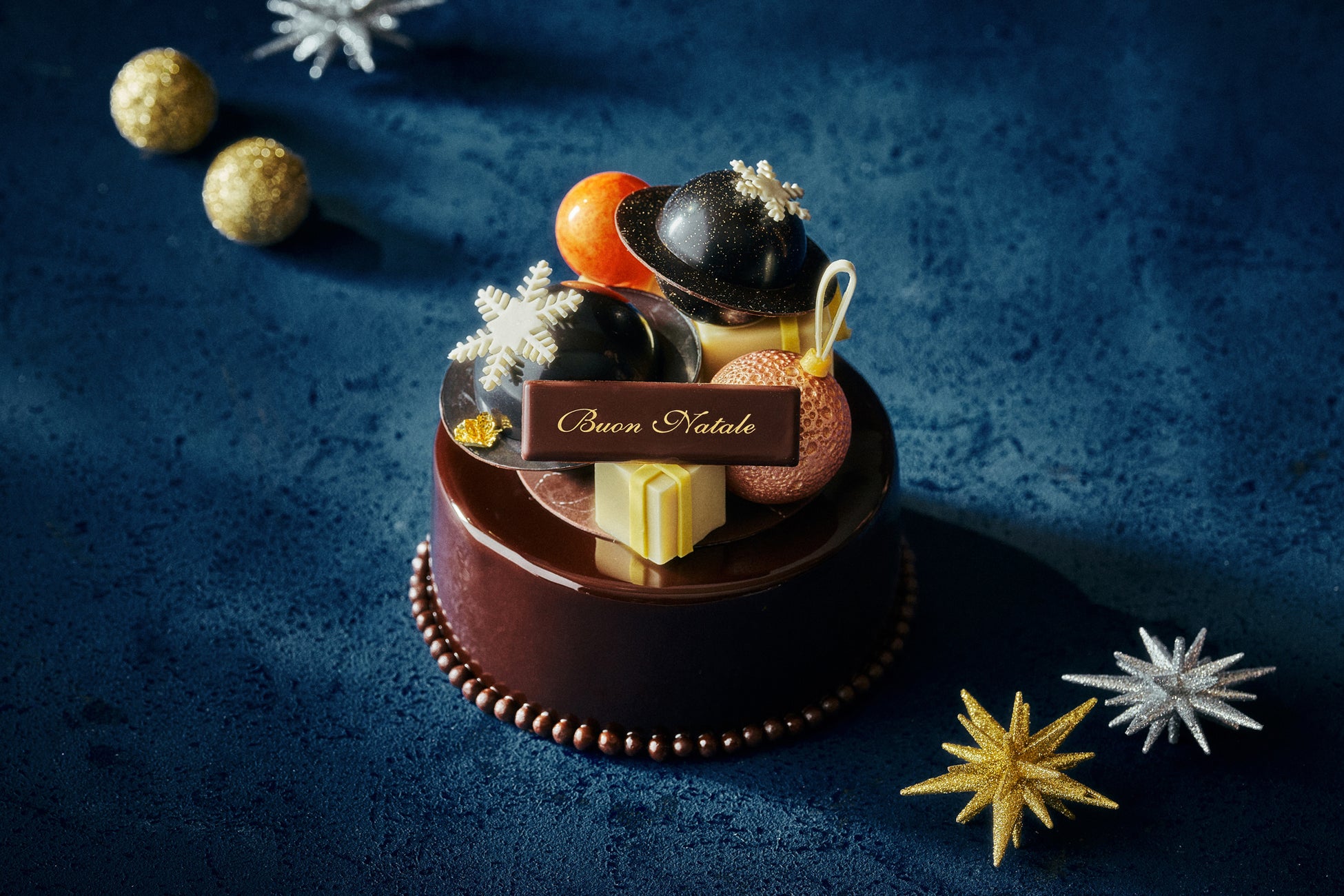 今年のホリデーシーズンのテーマ“Starlight of Love(スターライト オブ ラブ)”を表現する、宇宙をイメージしたロビーエリアのクリスマス装飾に合わせ、土星や火星などの惑星をかたどったチョコレート細工をあしらいます。ホテルオリジナルのチョコレート「Grande H」でつくる濃厚でなめらかなビターショコラムースをベースに、香ばしいピスタチオブリュレ、甘酸っぱいラズベリージュレなどを重ね、上品な大人の味わいのチョコレートムースケーキに仕上げます。そのほか、サンタをモチーフにしたケーキなど計10種類が登場いたします。