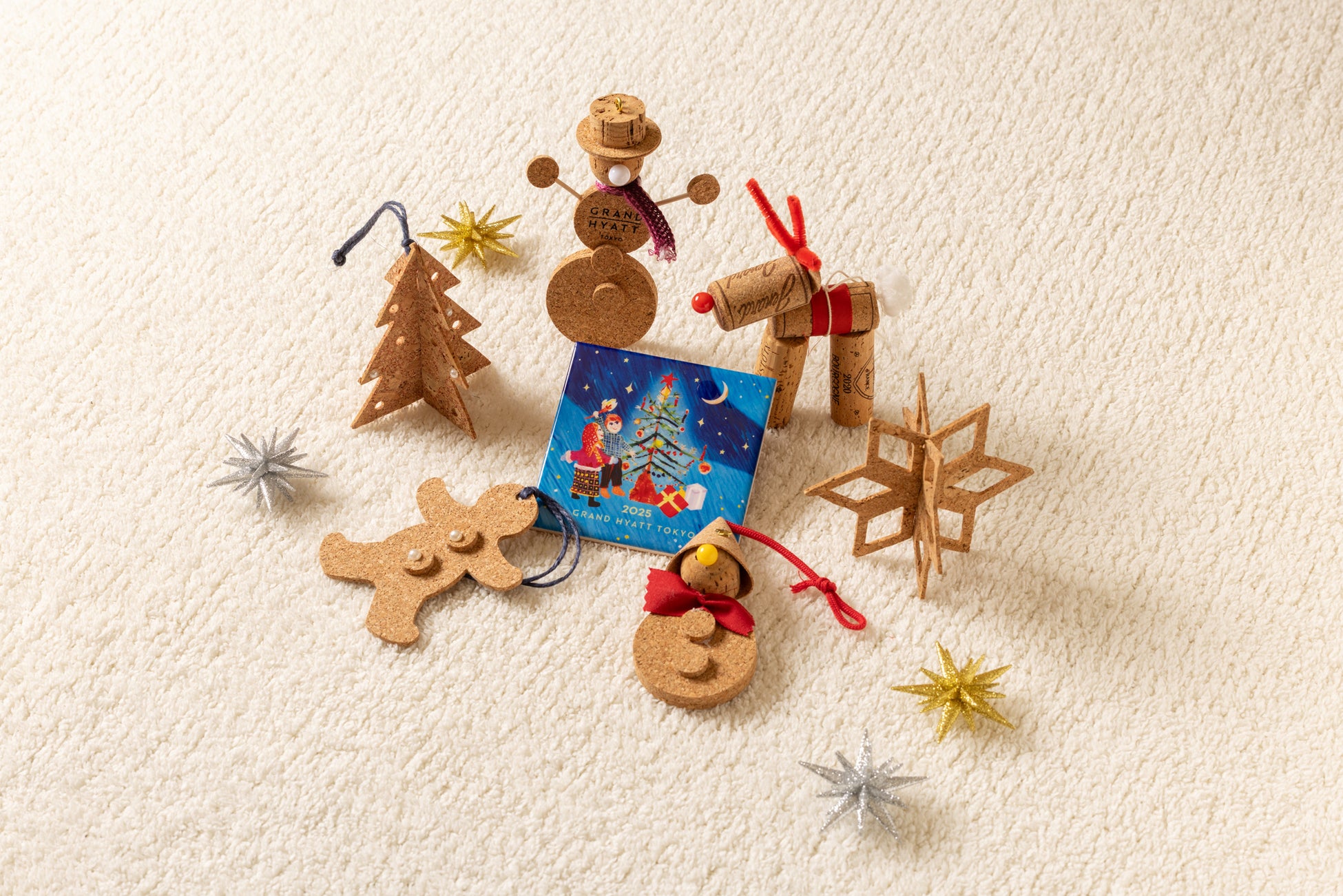ホテル内で消費されたワインやシャンパンのコルク栓をアップサイクルし、障がいのある方たちが1つひとつ手作りする温かみのあるオーナメントとイヤープレート。今年は、「Starlight of Love」のテーマに合わせ、星空が描かれたメインビジュアルをデザインしたイヤータイルのほか、赤鼻のトナカイやスノーマンなどをモチーフにしたオーナメントを数量限定でご用意いたします。売上金は、NPO法人「子供地球基金」に全額寄付いたします。