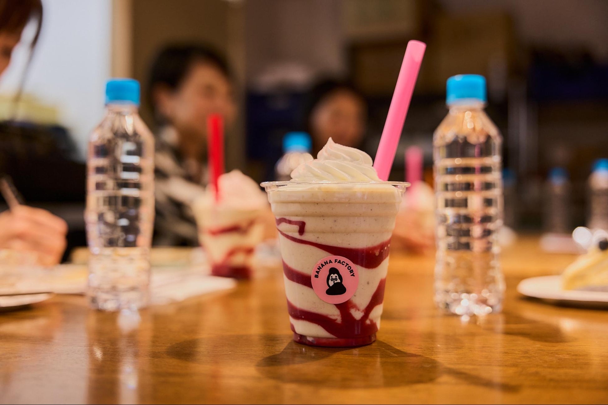 スカイツリーの近くに店舗を構えるバナナスイーツ専門店「バナナファクトリー」とコラボレーションし、期間限定で腸活コミュニティ発の共創商品「ベリーオリゴ バナナシェイク」を販売します。