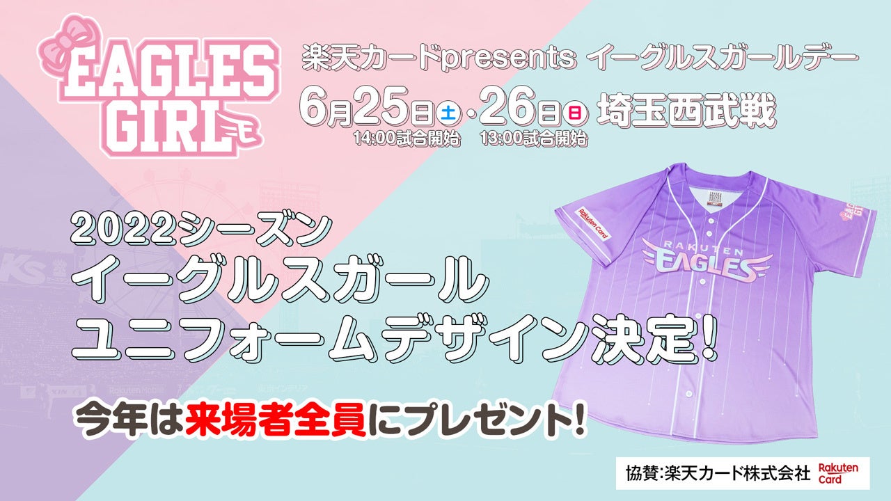 株式会社楽天野球団(本社:宮城県仙台市宮城野区、代表取締役社長:米田 陽介)は、2022シーズンの『楽天カードpresents イーグルスガールデー』に向けて募集した「イーグルスガールユニフォーム」のデザインが決定しましたので、お知らせいたします。