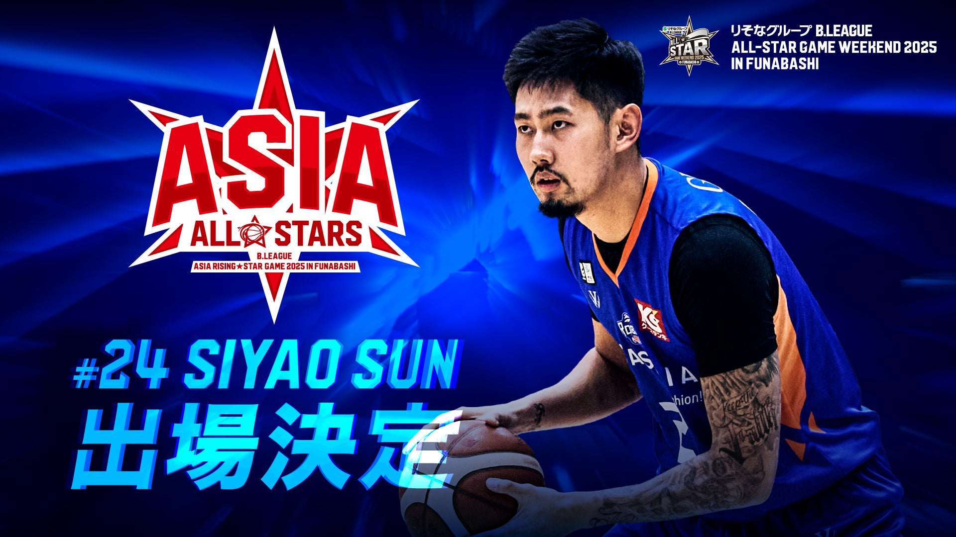 2025年1月18日(土),19日(日)に、LaLa arena TOKYO-BAYにて「りそなグループ B.LEAGUE ALL-STAR GAME WEEKEND 2025 IN FUNABASHI」が開催されます。その中の「B.LEAGUE ASIA RISING STAR GAME」のB.LEAGUE ASIA ALL STARSチームに、茨城ロボッツ所属の#24 サンシャオ選手が選出されましたので、ご報告いたします。
