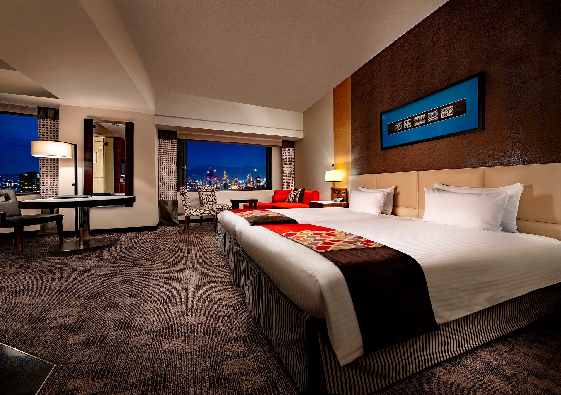 プライベートサウナのある「セレブリティスイート」(エグゼクティブフロア)、神戸の夜景を一望する「ハーバービューデラックス」「ビューバスデラックス」、ご家族やご友人同士でもゆったりとお過ごしいただける、最大5名様までご宿泊可能な「スイートコネクトルーム」の全4種をご用意。