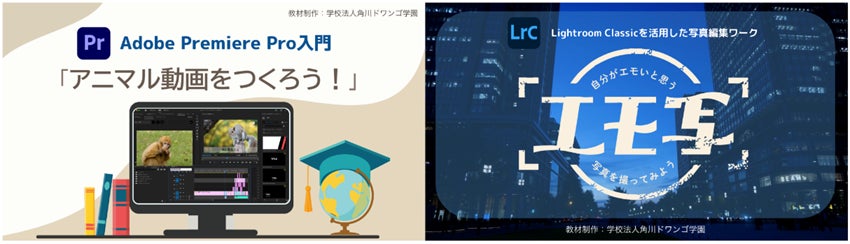 これを受け、今回は生徒たちが習得したいソフトとして人気の高い動画制作ソフト「Adobe Premiere Pro」と、見た人の心を動かす写真表現を学べる「Adobe Photoshop Lightroom Classic」の教材を開発しました。ビジュアルコミュニケーションを重視する世代が楽しみながら学べる教材となっています。