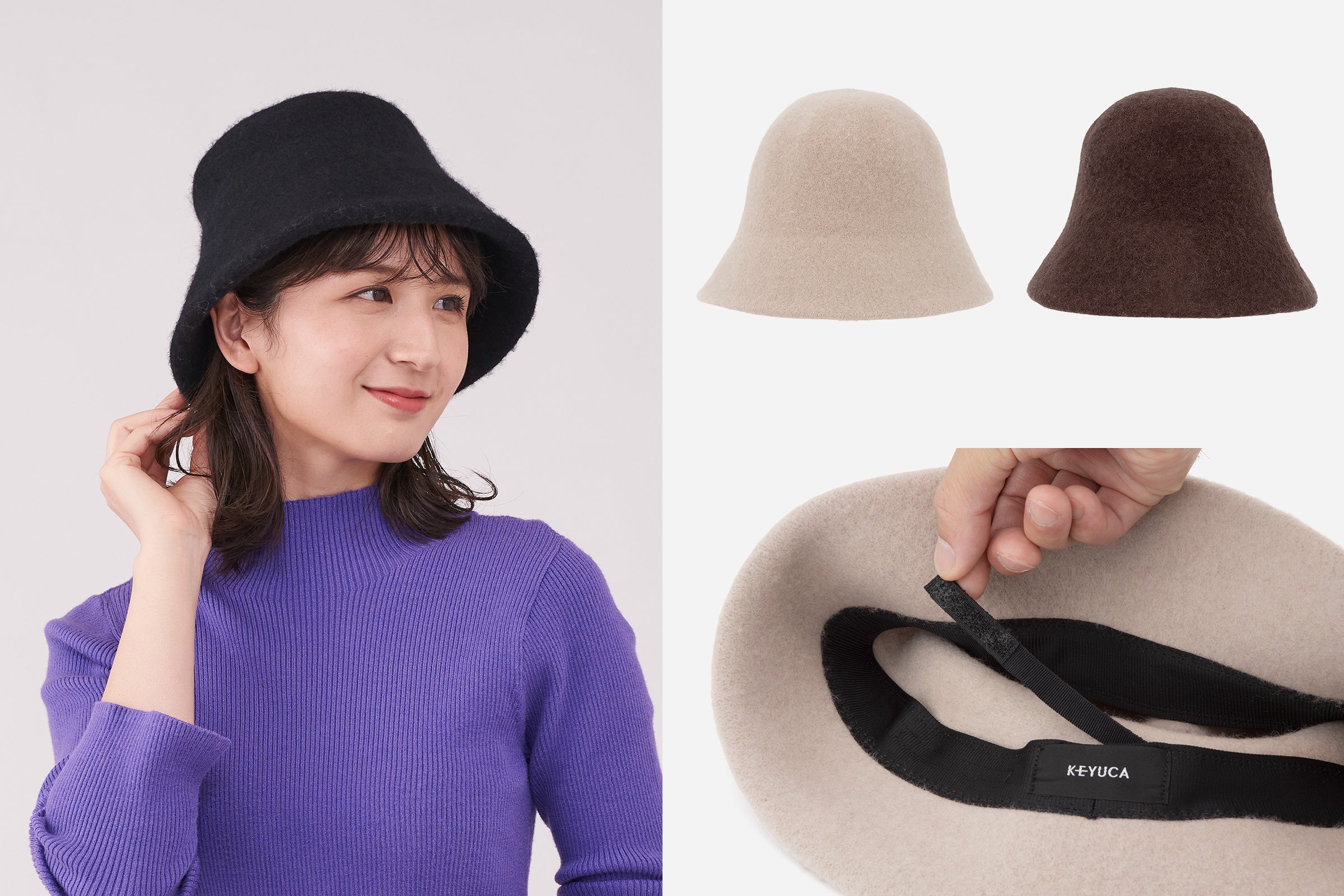 新作アイテムの1つ、「プレーティングリブ手首ウォーマー」は、季節の変わり目にぴったりの薄手ニット素材で、広げると2色になる特殊な編み方を採用。コーディネートのさりげないアクセントとして取り入れていただけます。また、秋冬にぴったりなフェルト素材を採用し、きれいめな秋冬コーディネートを叶える「フェルトキャスケット」と「フェルトパイピングメトロハット」も新登場します。