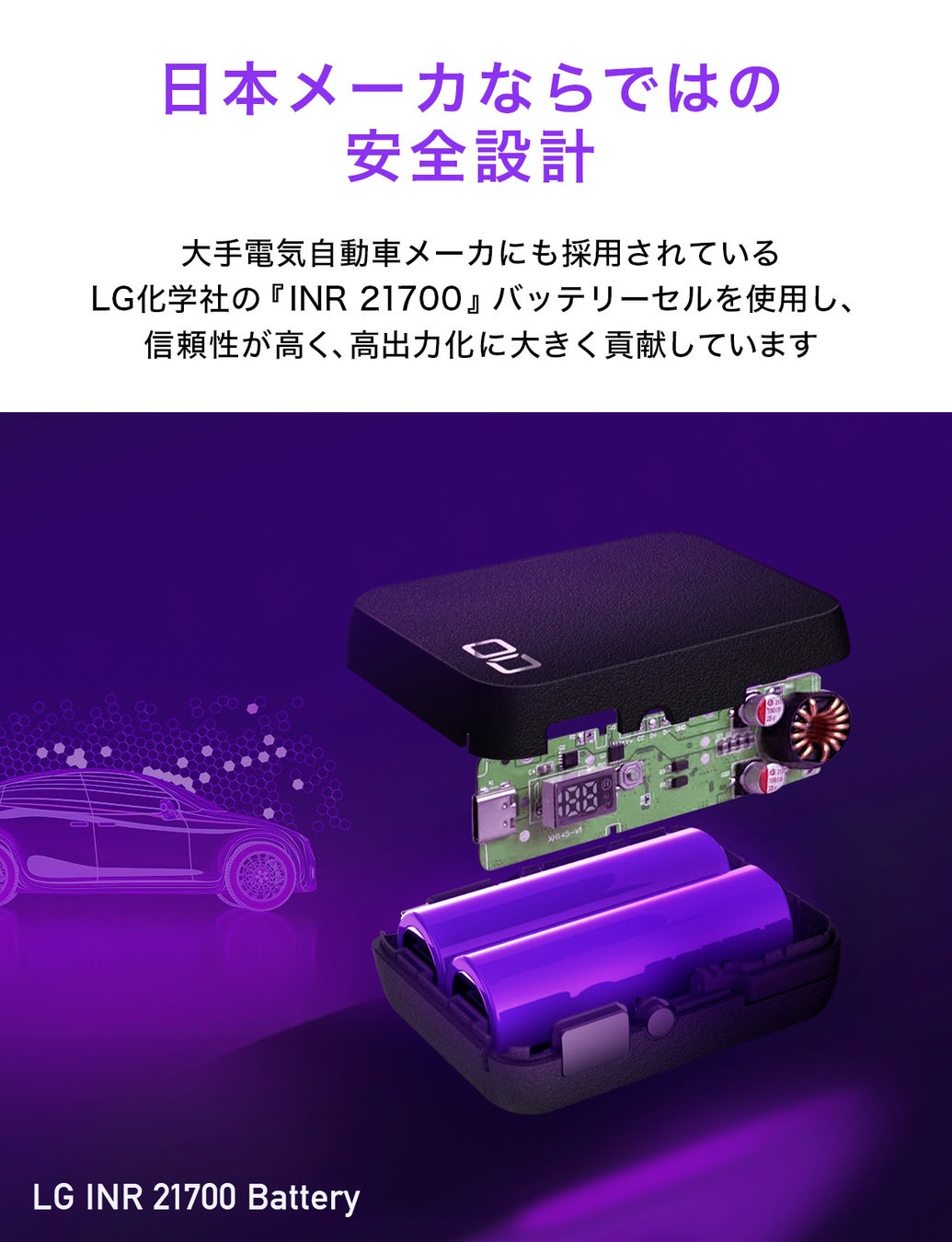 『SMARTCOBY Pro CABLE』はLG化学社の『INR 21700』バッテリーセルを使用。
