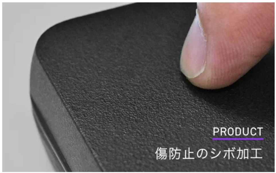 『SMARTCOBY Pro CABLE』は、充電器の表面に一眼レフカメラのボディのような粗いシボ加工を施しているため、ペンや爪で引っ搔いたりしても製品表面に傷が付きにくいという一つの機能を付加しており、より多機能性を高めました。