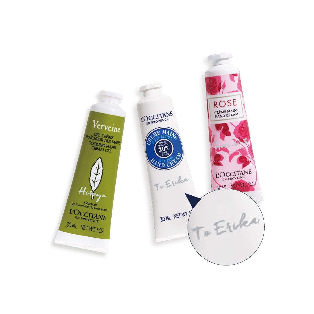 ハンドクリーム(30ml)を含む税込4,070円以上ご購入の方に、商品へ名入れできるサービス。