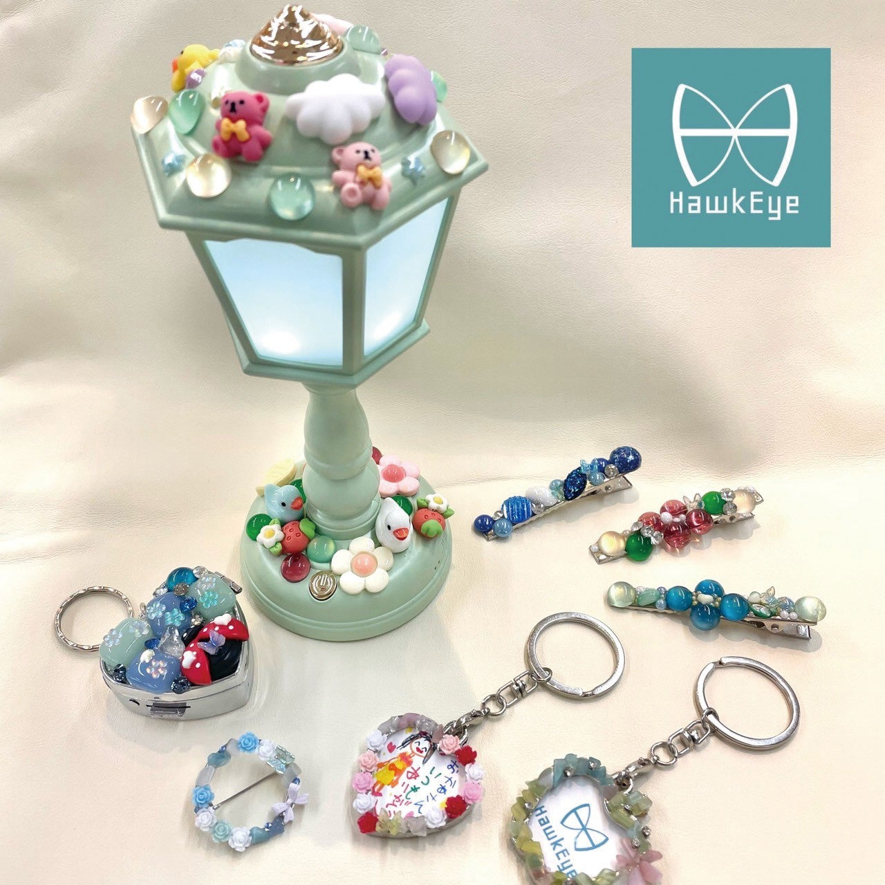 キーホルダーやヘアアクセサリーをビーズなどでデコレーションし作る、親子で楽しめるワークショップ。