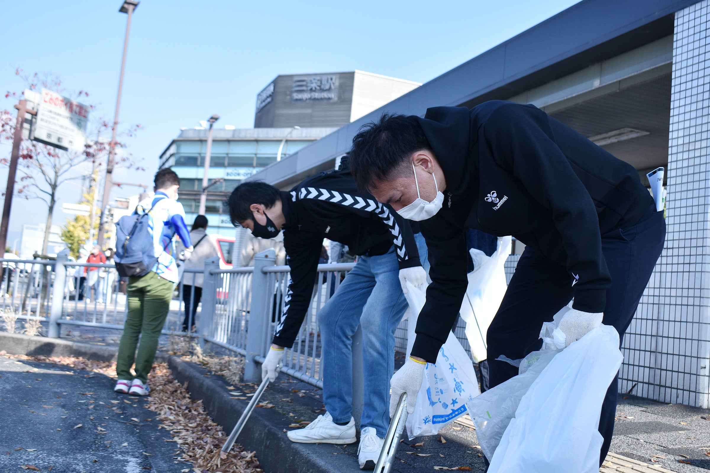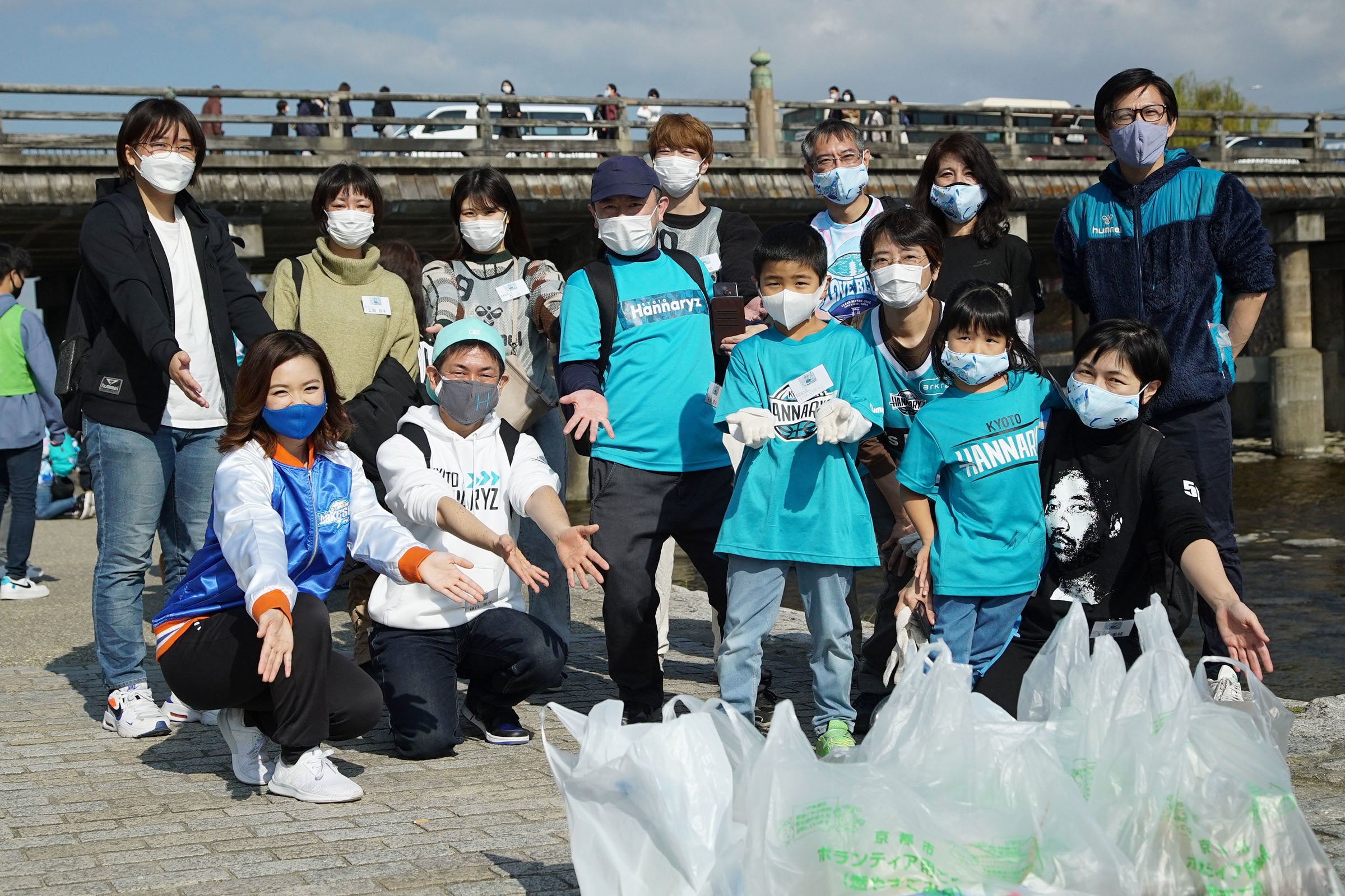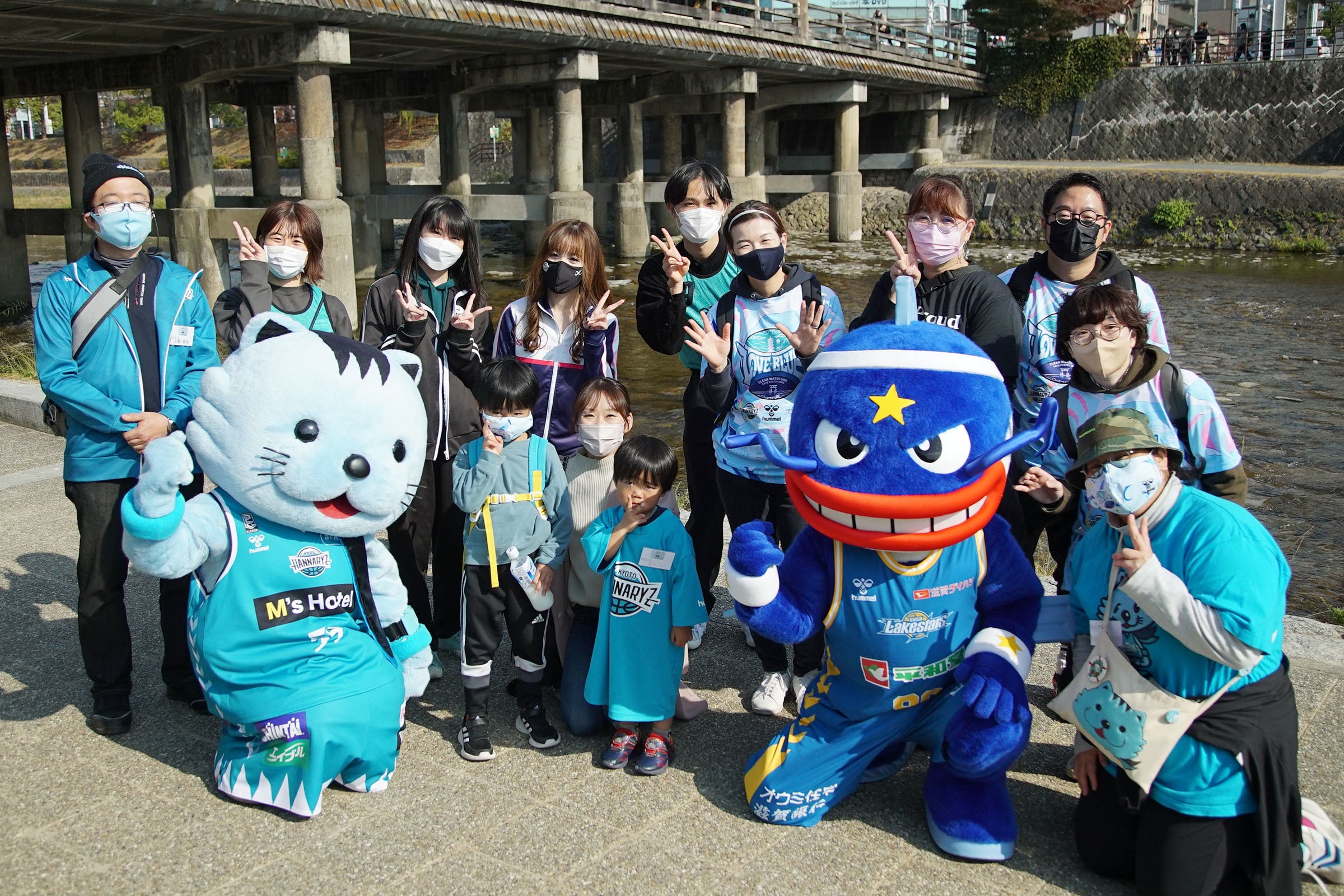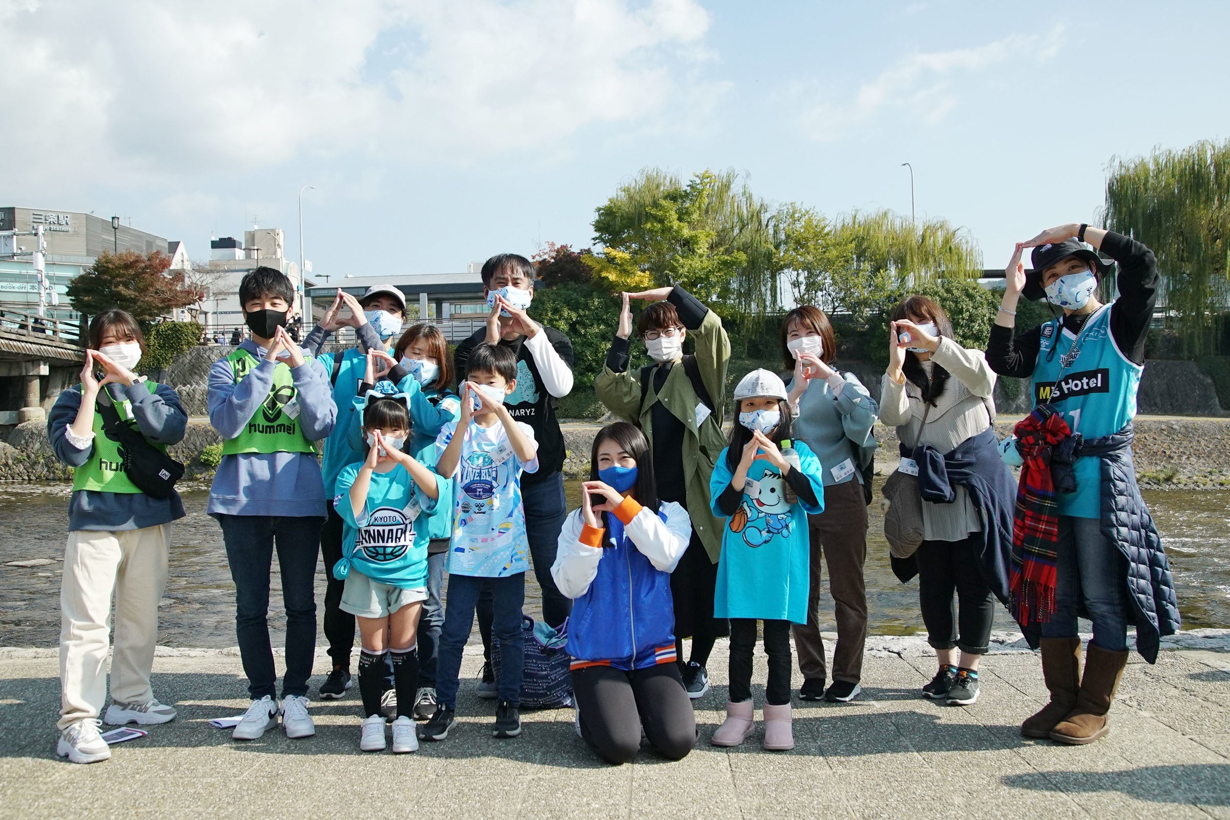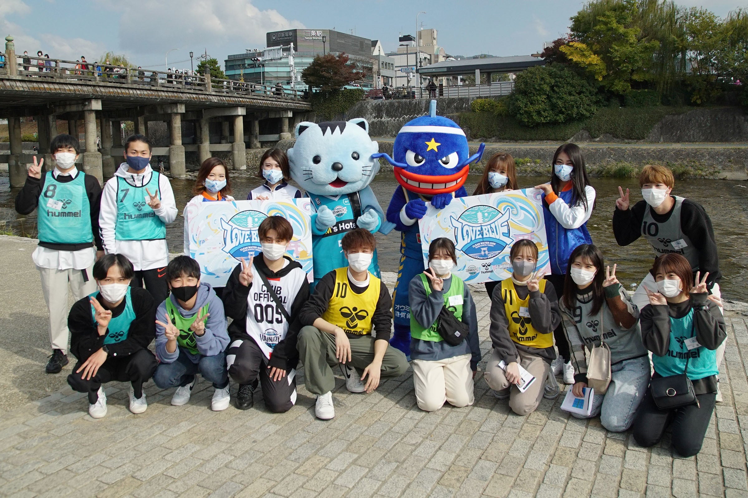 第1回目の活動として、昨秋には両クラブのスタッフやチア、ブースターなど約70名で鴨川の清掃活動を実施。コロナ禍でなかなかできないチアとファンの交流の場になったり、子どもにとって初めてのボランティアになったりと、楽しさを感じてもらうことができました。