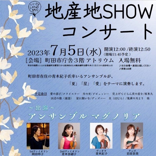 【東京都町田市】4年ぶりに町田市庁舎で「地産地SHOWコンサート」を開催します