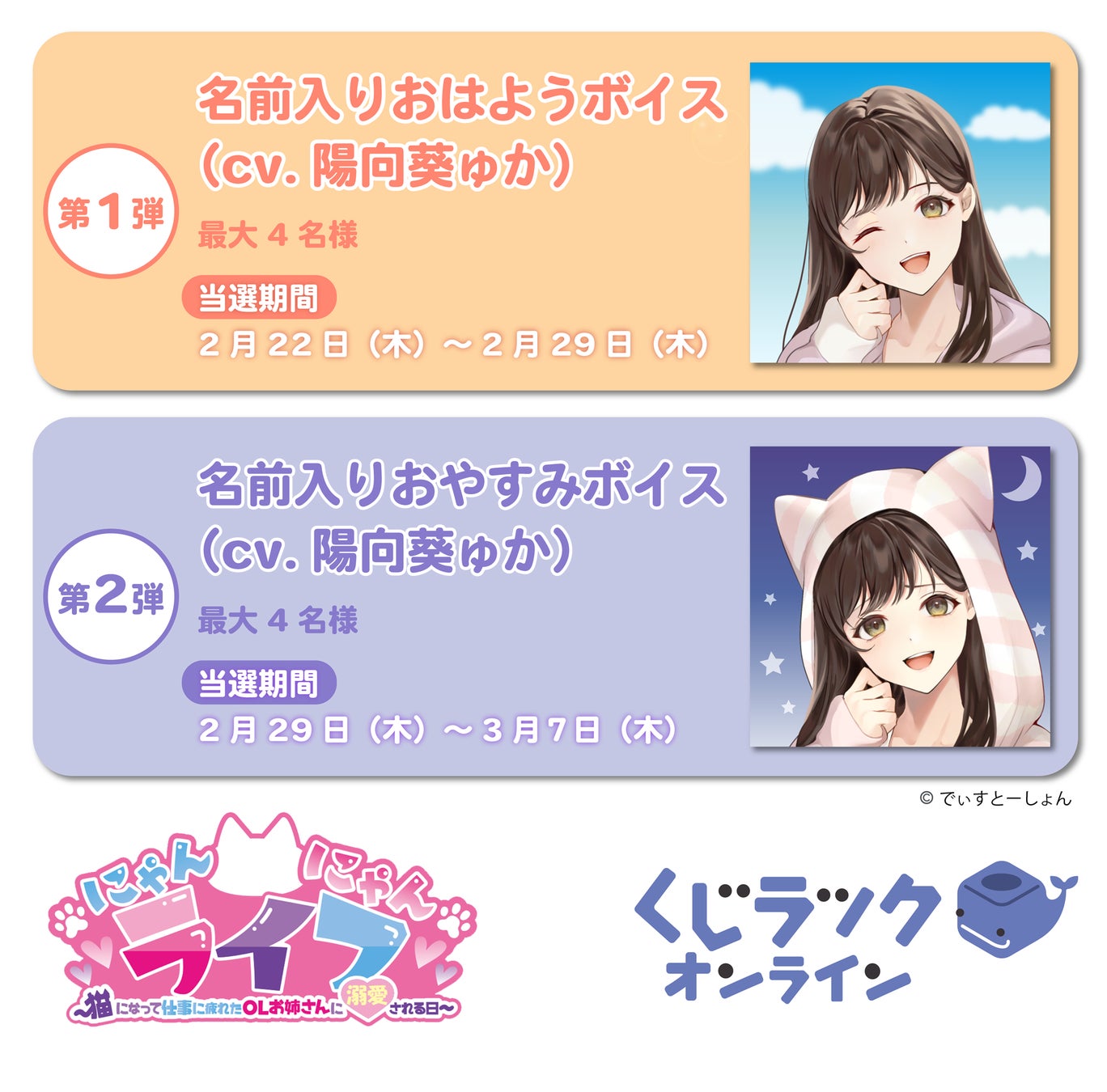 CV:陽向葵ゅかによるシチュエーションボイス「にゃんにゃんライフ」がくじラックオンラインに登場!2月22日(木)より発売開始!