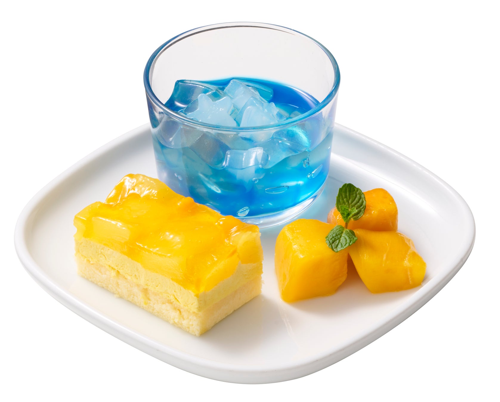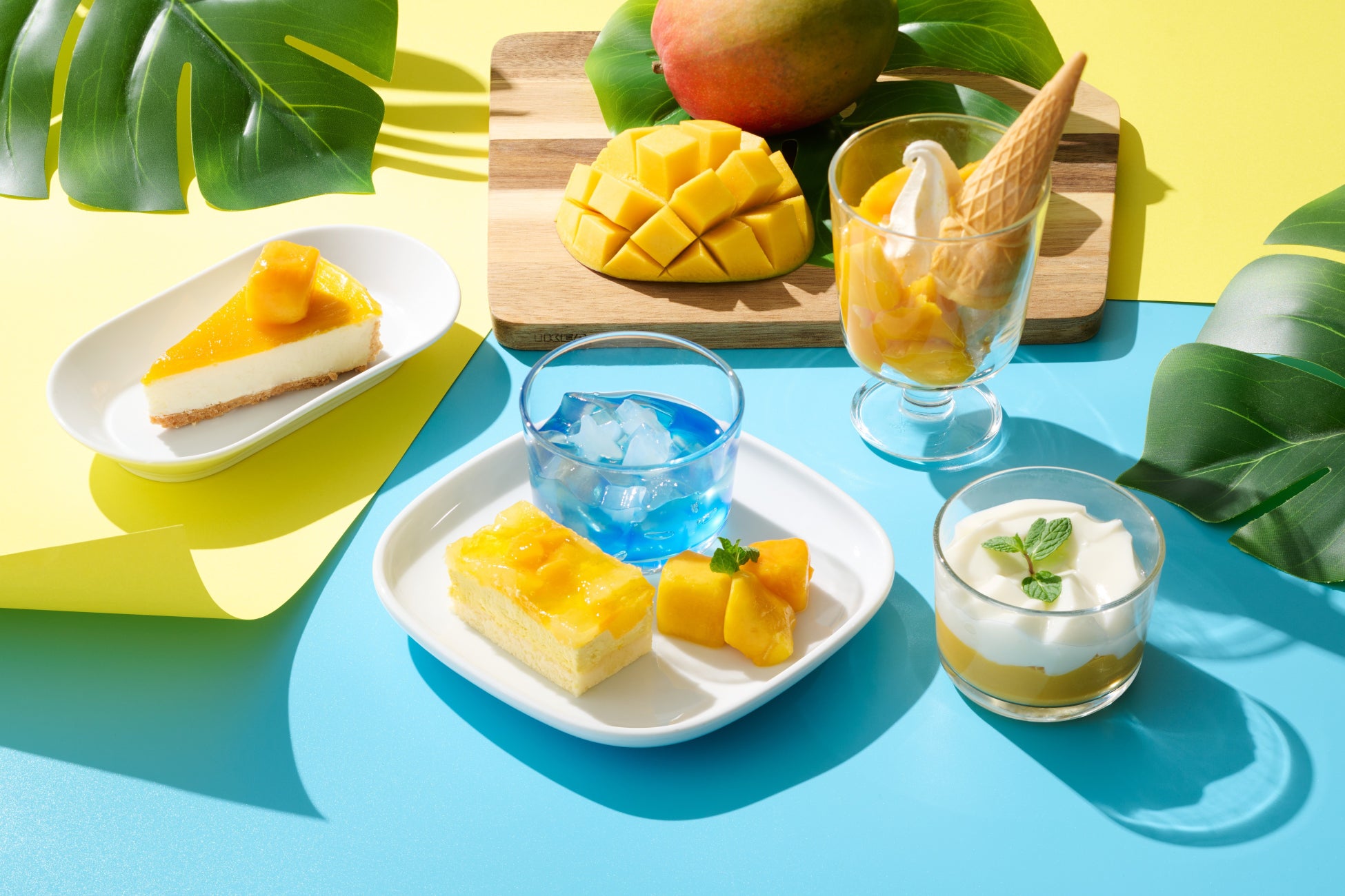 気軽かつお手ごろに南国気分を味わえるマンゴーデザートが登場。今年は、星形のナタデココ入りソーダゼリー、パインマンゴーケーキ、マンゴーチャンクの3種類を組み合わせたアソートプレートや、ムース状のクリームがたっぷり入ったマンゴータルトなど、爽やかな気分を味わえるスイーツをご用意しています。元気なオレンジ色と青色のコントラストで、トロピカルな南国の海やパラダイス をイメージし、見た目からも夏のワクワクを楽しめる、暑い夏にぴったりなスイーツが揃います。期間限定のスイーツで、南国の気分を満喫しませんか?