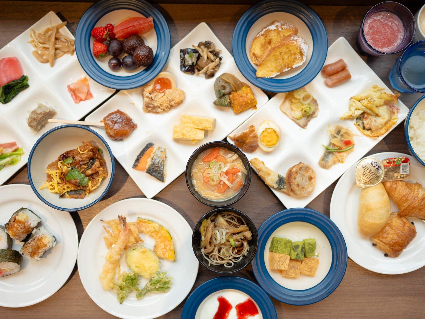 たくさん歩いた足を労わる「めぐリズム 貼る炭酸ジェルパック」と、体の内側からリカバリーする「ピルクルミラクルケア」をお二人分ご用意。チェックアウトはゆったり12時のレイトチェックアウトで、朝も余裕をもってのんびりお過ごしいただけます。翌朝は、和食派にも洋食派にも好評の、自慢の朝食をたっぷりとお楽しみください。
