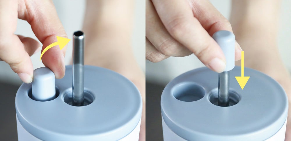 ストロー付きでありながら、持ち運ぶときにはキャップを閉じて完全密閉にできる構造です。
