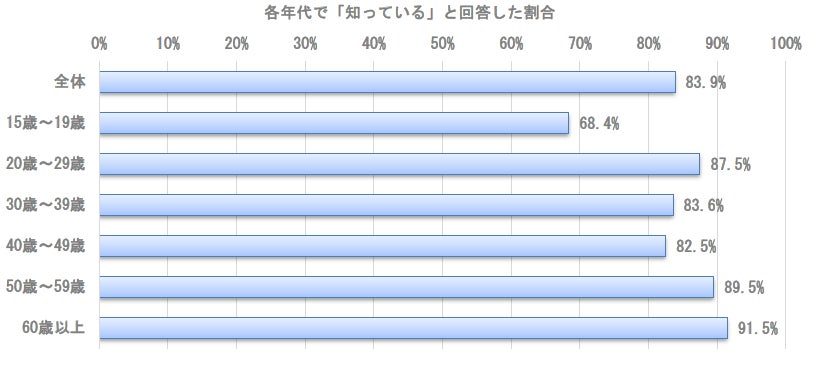 ・全体では83.9%の方が、日本と海外の医療費の違いについて知っていることがわかりました。 ・一方、19歳以下の場合は「知っている」の割合が68.4%にとどまっており、10代の若年層は海外旅行先で高額な医療費を請求されるケースもあることを知らないまま旅行に行ってしまうリスクがあることがうかがえます。 |