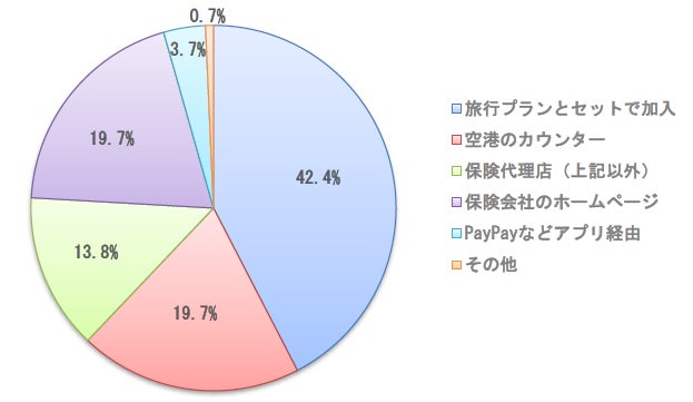 ・4割以上の方が「旅行プランとセットで加入」と回答した一方、保険代理店や保険会社のホームページ経由で加入する方はいずれも10%台にとどまり、加入手続きの手軽さや導線のわかりやすさが求められていることがうかがえます。 |
