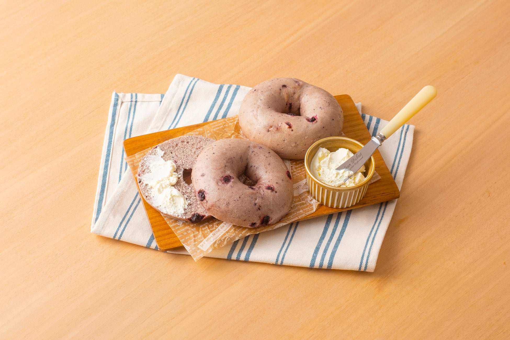 ジューシーなブルーベリーの果実をたっぷり練り込んだ風味豊かなベーグルとクリームチーズの相性は抜群です。