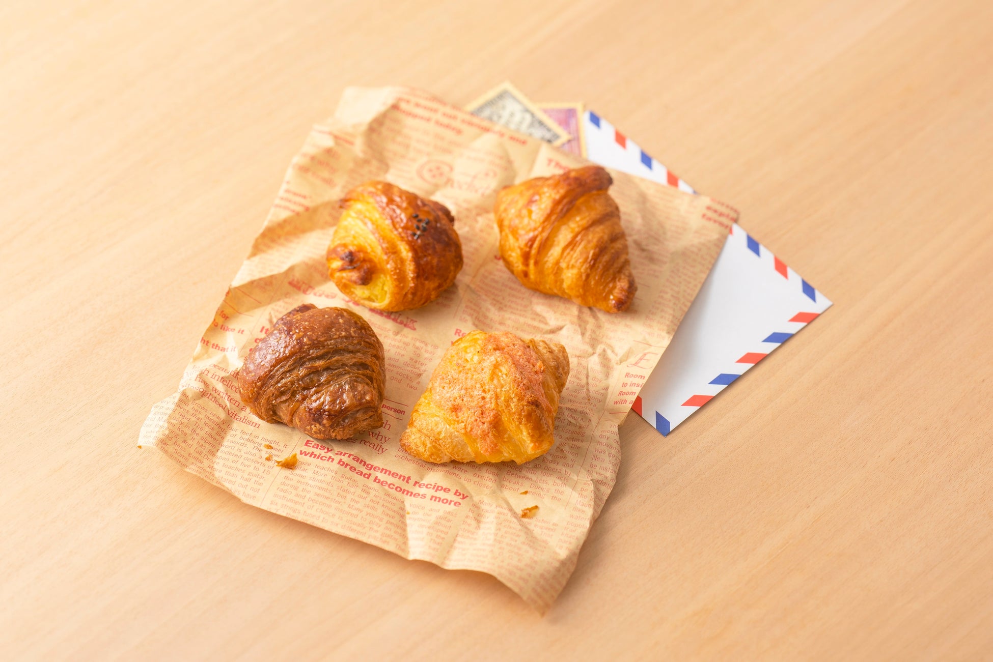 パリッモチッとした生地に甘いシロップがジュワッと溢れる、店内で焼き上げるミニクロワッサン。人気のプレーン、チョコレートはお得なセットもご用意しています。