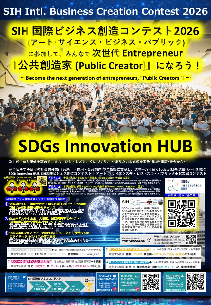当社が運営する「Hero Egg」は、SDGs達成に向けたビジネスコンテストやイノベーション創出を支援する国際プラットフォーム「SDGs Innovation HUB(SIH)」が主催する、「SIH 国際ビジネス創造コンテスト 2026」の関西拠点として採用されました。